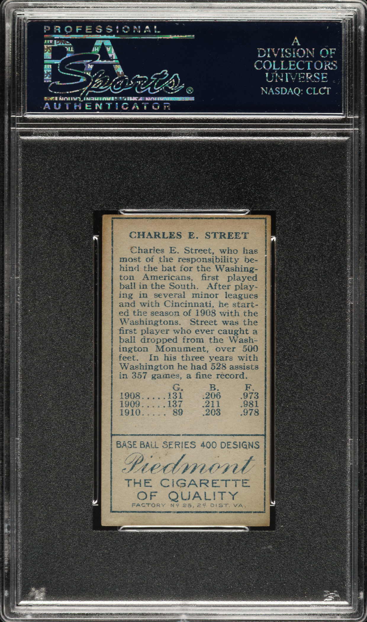 Graded EX 5 by PSA. Washington Senators.