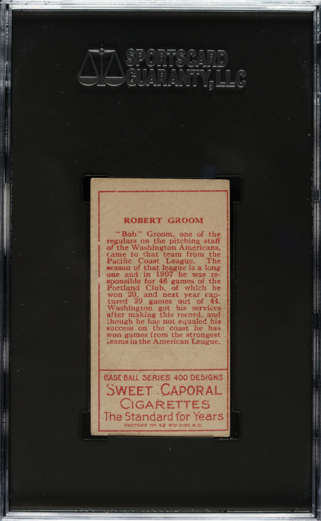 Lot # 1605: 1911 T205 Gold Border Bob Groom SGC GOOD+ 2.5