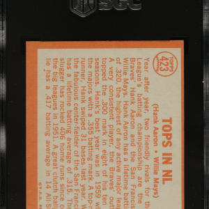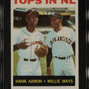 Graded NM 7 by SGC. Milwaukee Braves and San Francisco Giants Hall of Famers Hank Aaron and Willie Mays.