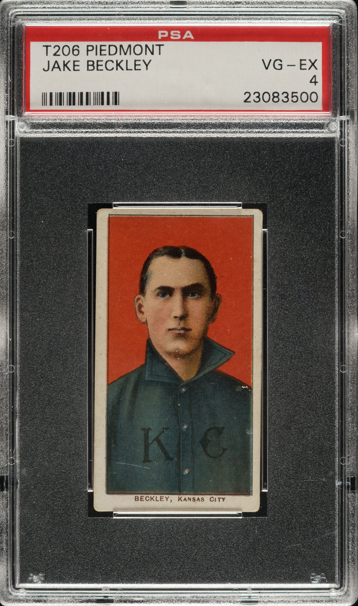 Graded VG-EX 4 by PSA. Kansas City Blues Hall of Famer Jake Beckley.