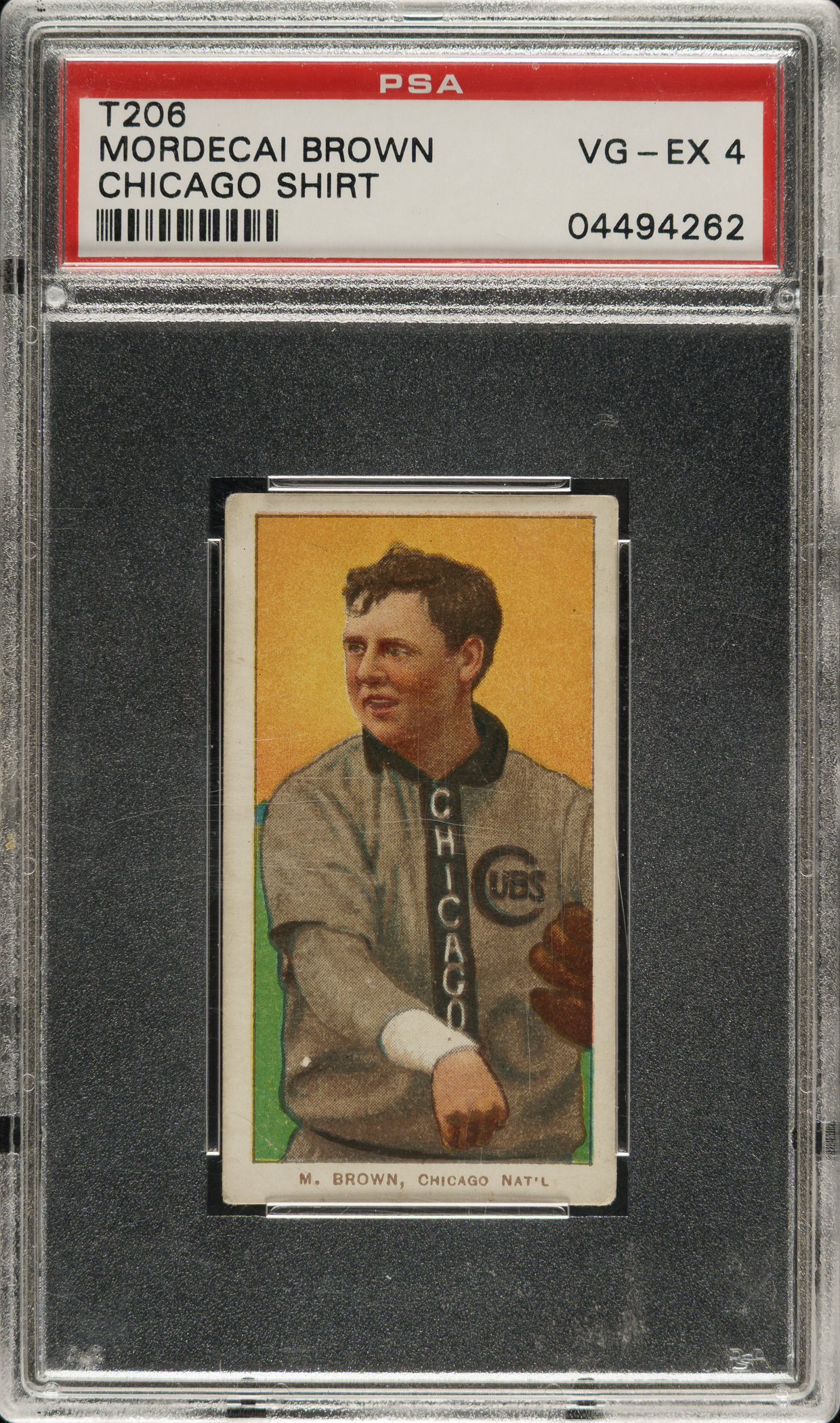 Graded VG-EX 4 by PSA. Chicago Cubs Hall of Famer Mordecai Brown.