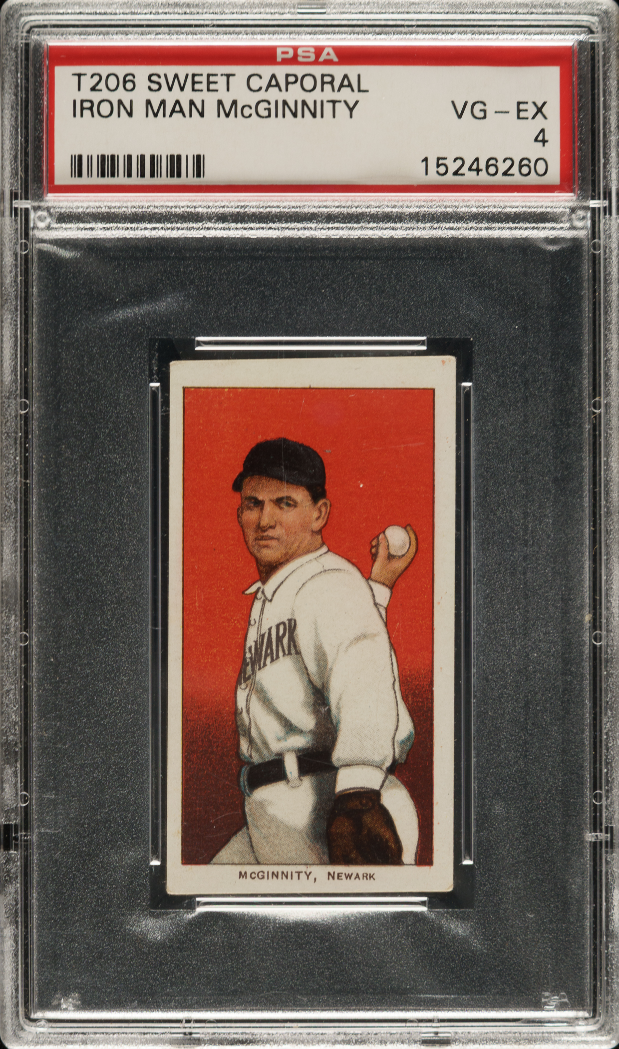Graded VG-EX 4 by PSA. Newark Indians Hall of Famer Joe "Iron Man" McGinnity.