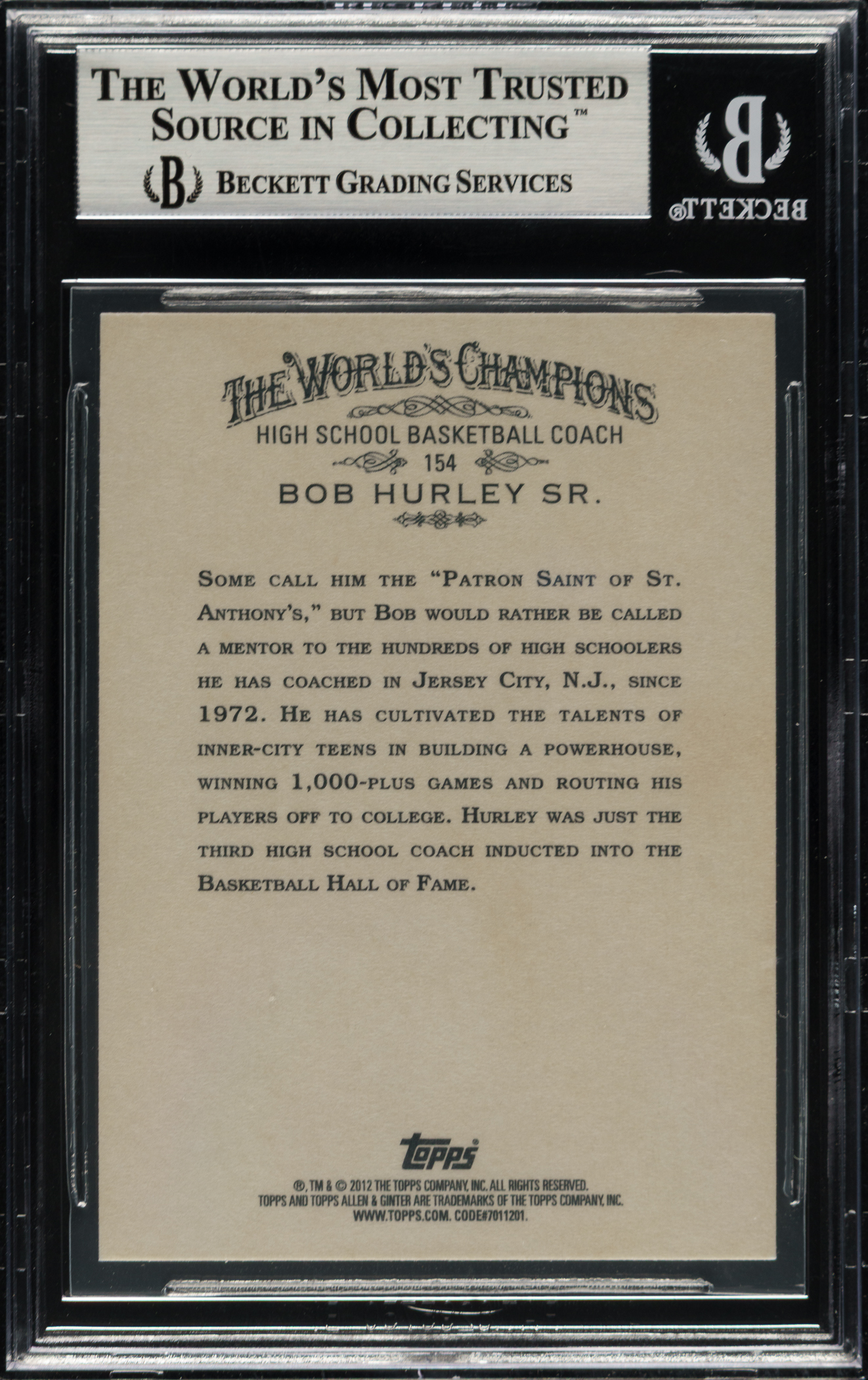 Beckett has encapsulated the card, grading the signature Authentic. Basketball Hall of Famer Bob Hurley.