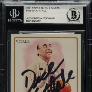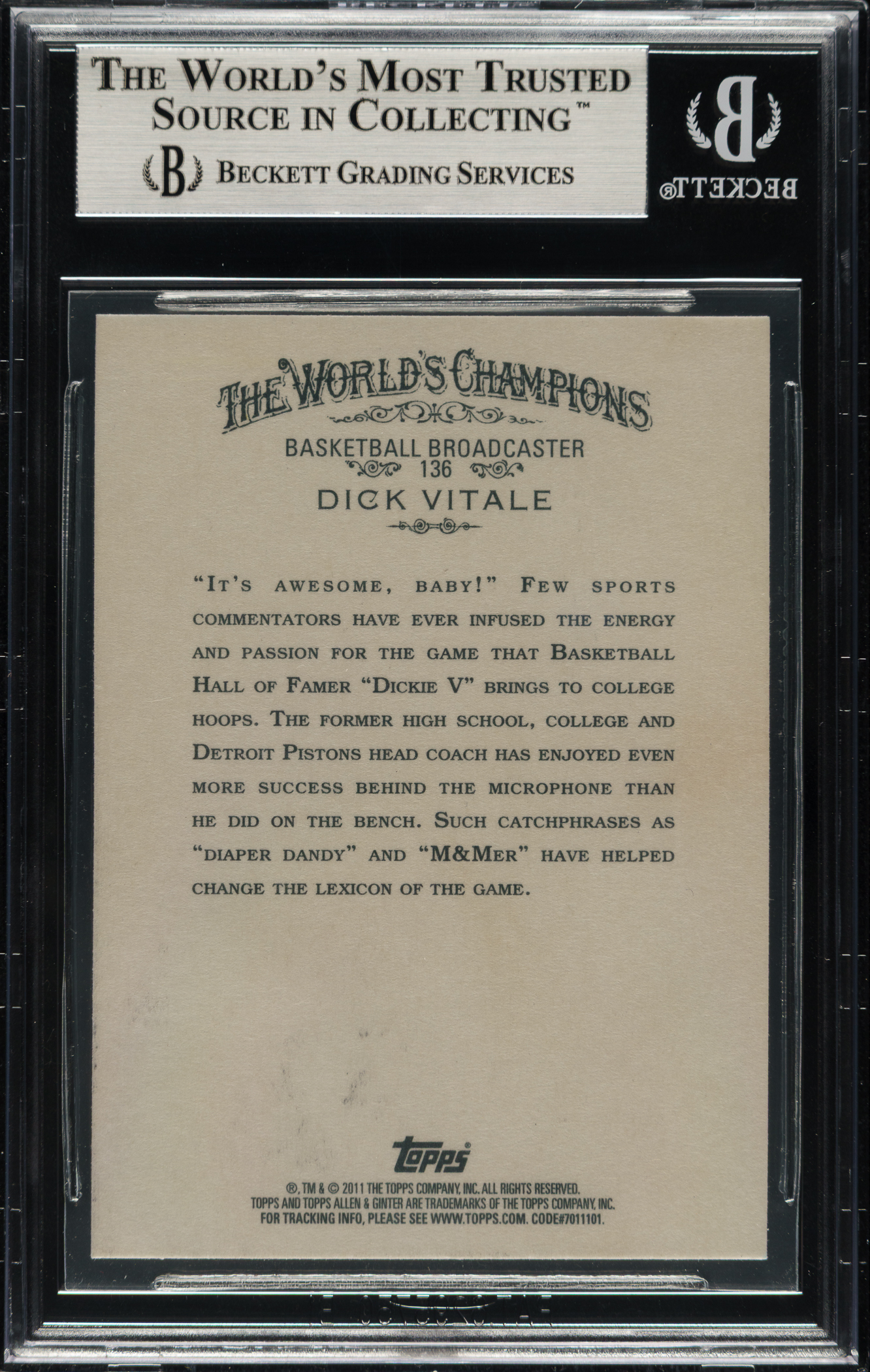 Beckett has encapsulated the card, grading the signature Authentic. Basketball Hall of Famer Dick Vitale.