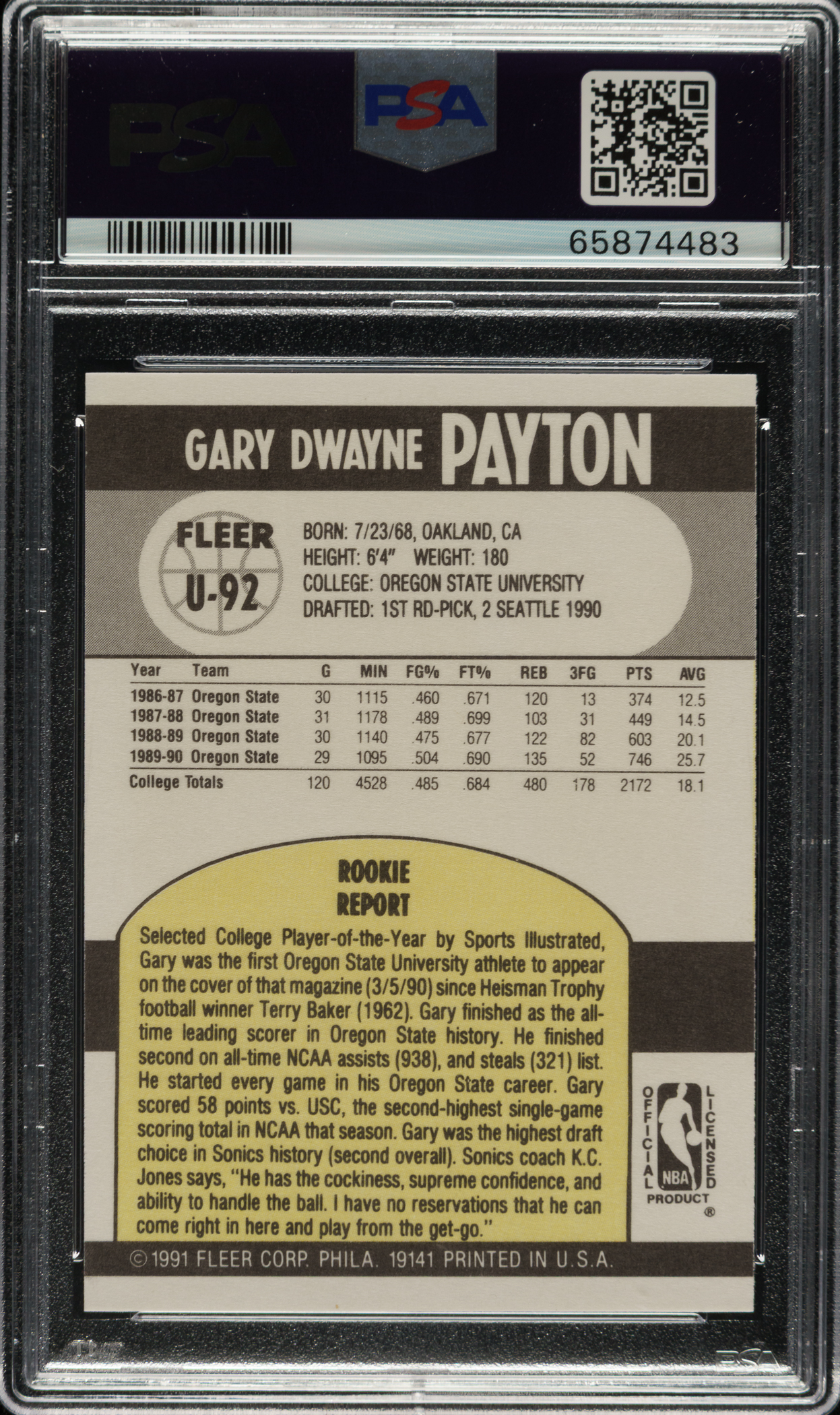 PSA/DNA has encapsulated the card, grading the signature GEM MINT 10 and the card MINT 9. Seattle Supersonics Hall of Famer Gary Payton.