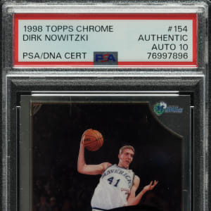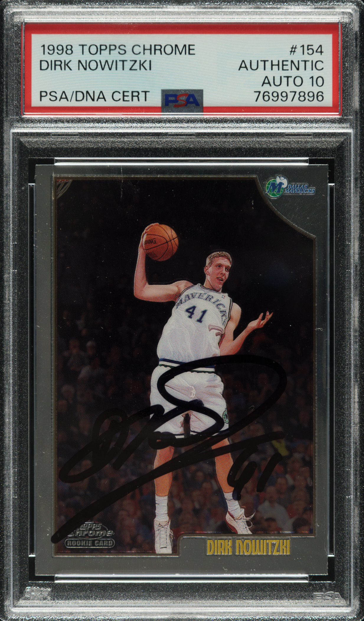 PSA/DNA has encapsulated the card, grading the signature GEM MINT 10. Dallas Mavericks Hall of Famer Dirk Nowitzki.