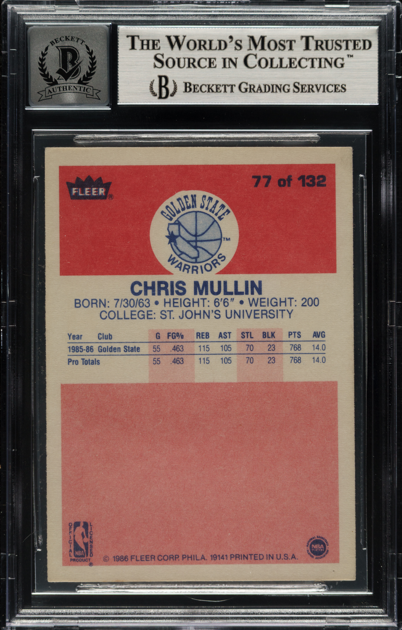 Beckett has encapsulated the card, grading the signature GEM MINT 10. Golden State Warriors Hall of Famer Chris Mullin.