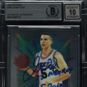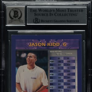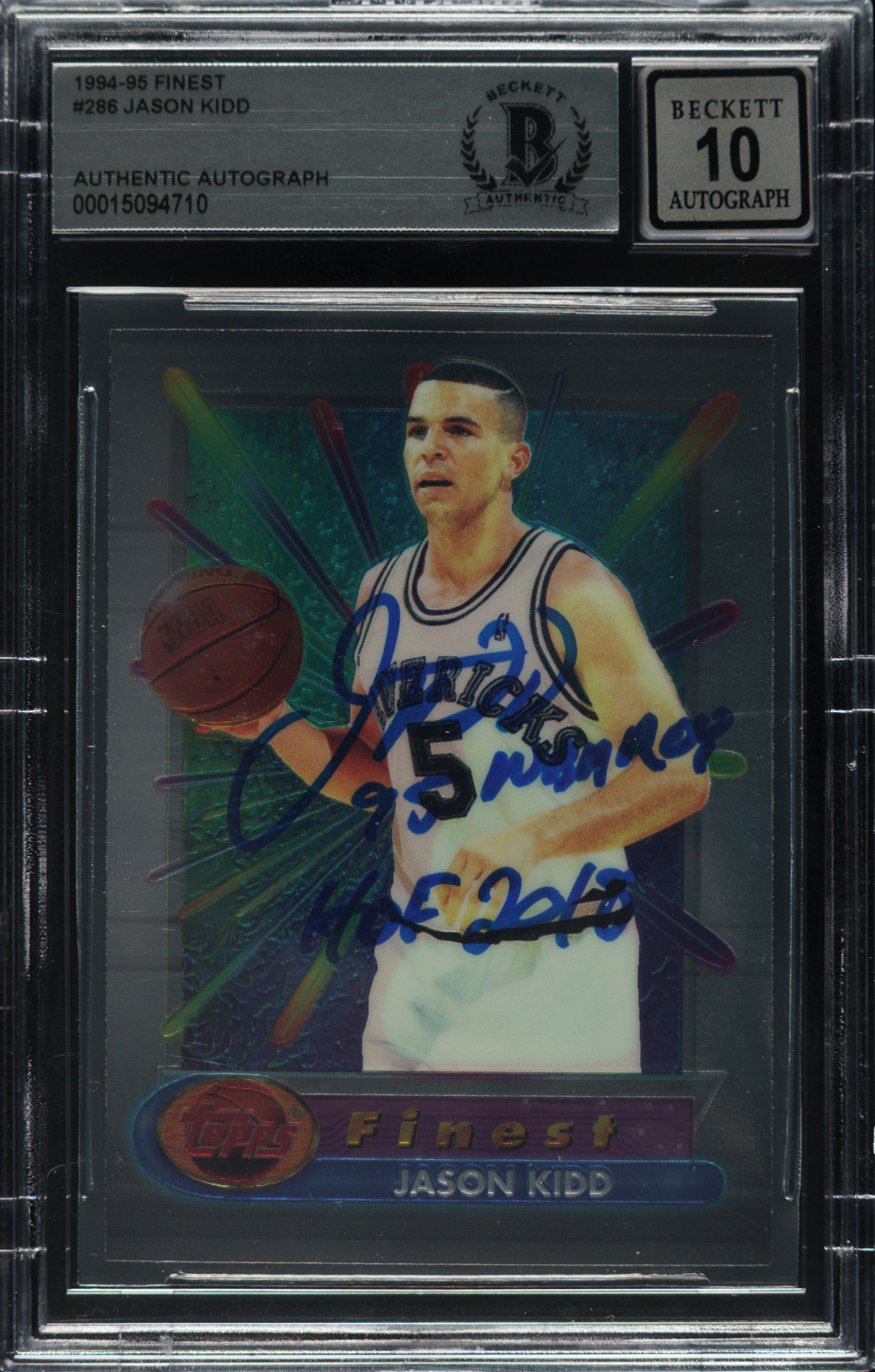 Beckett has encapsulated the card, grading the signature GEM MINT 10. Dallas Mavericks Hall of Famer Jason Kidd.