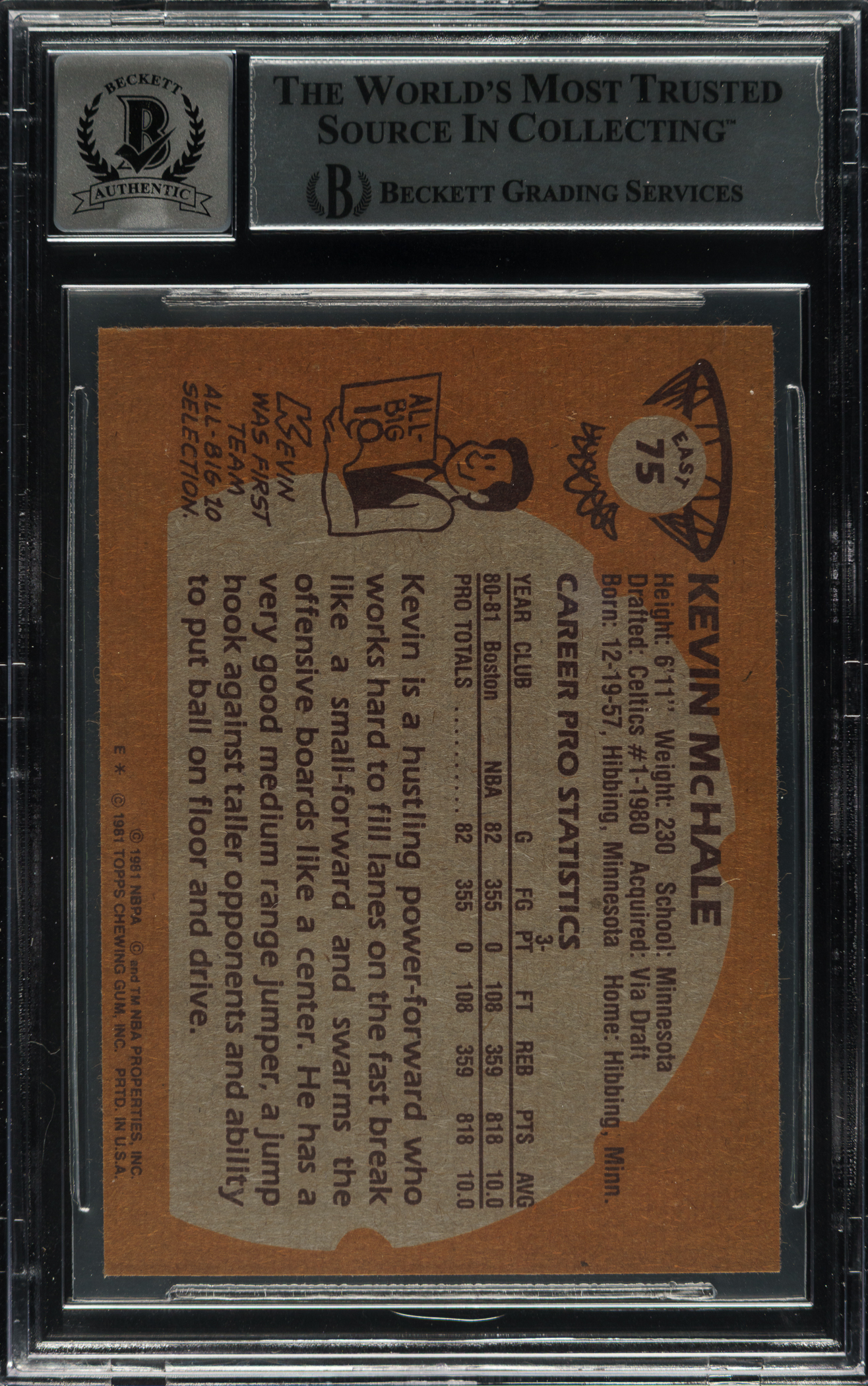 Beckett has encapsulated the card, grading the signature GEM MINT 10. Boston Celtics Hall of Famer Kevin McHale.