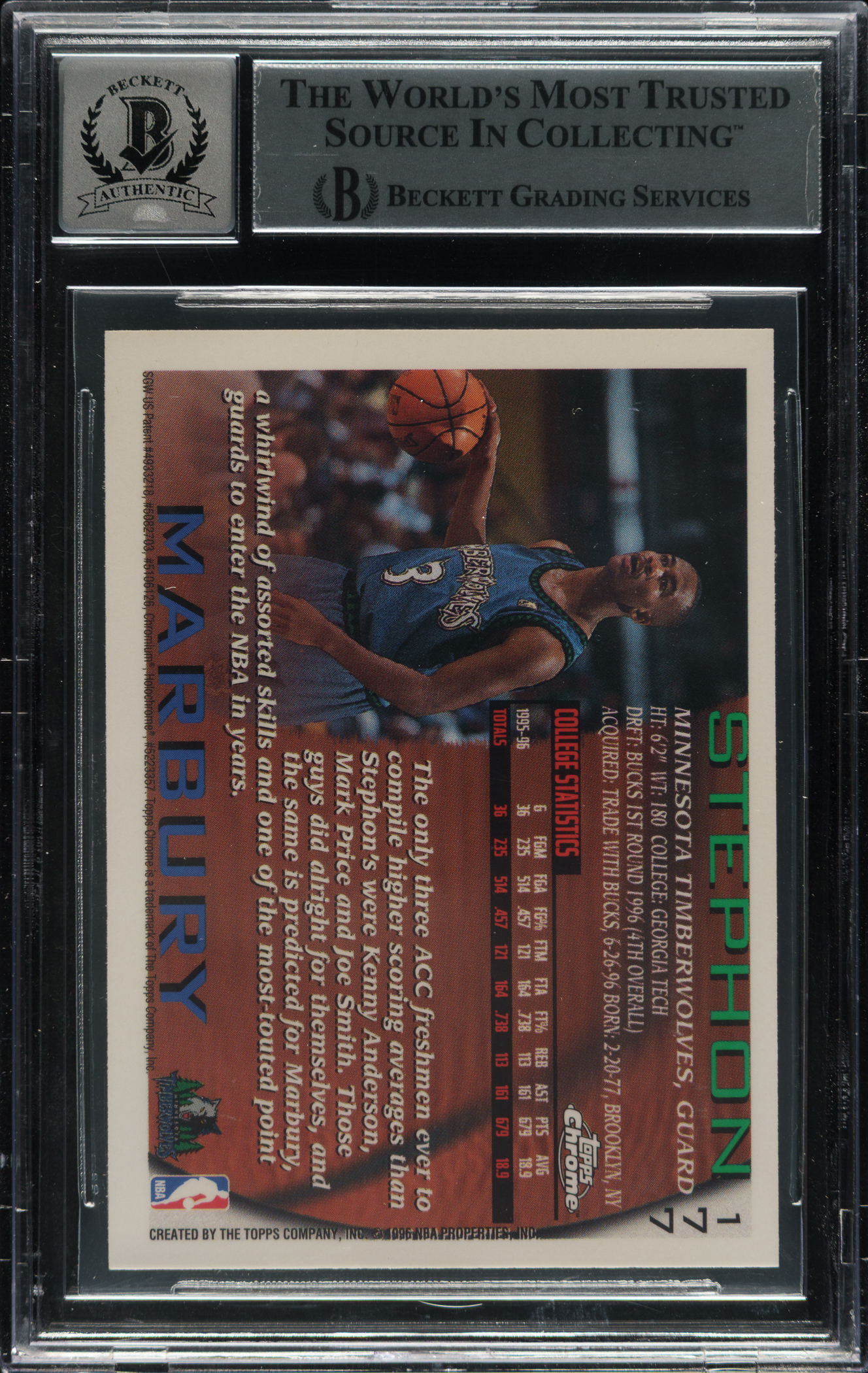 Beckett has encapsulated the card, grading the signature GEM MINT 10. Minnesota Timberwolves.