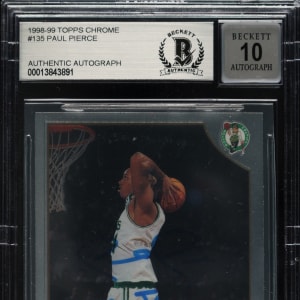 Beckett has encapsulated the card, grading the signature GEM MINT 10. Boston Celtics Hall of Famer Paul Pierce.