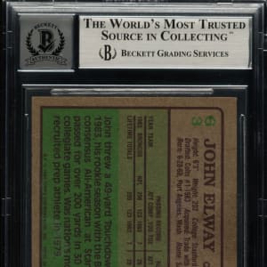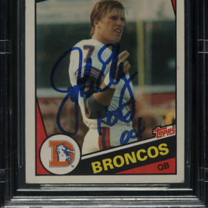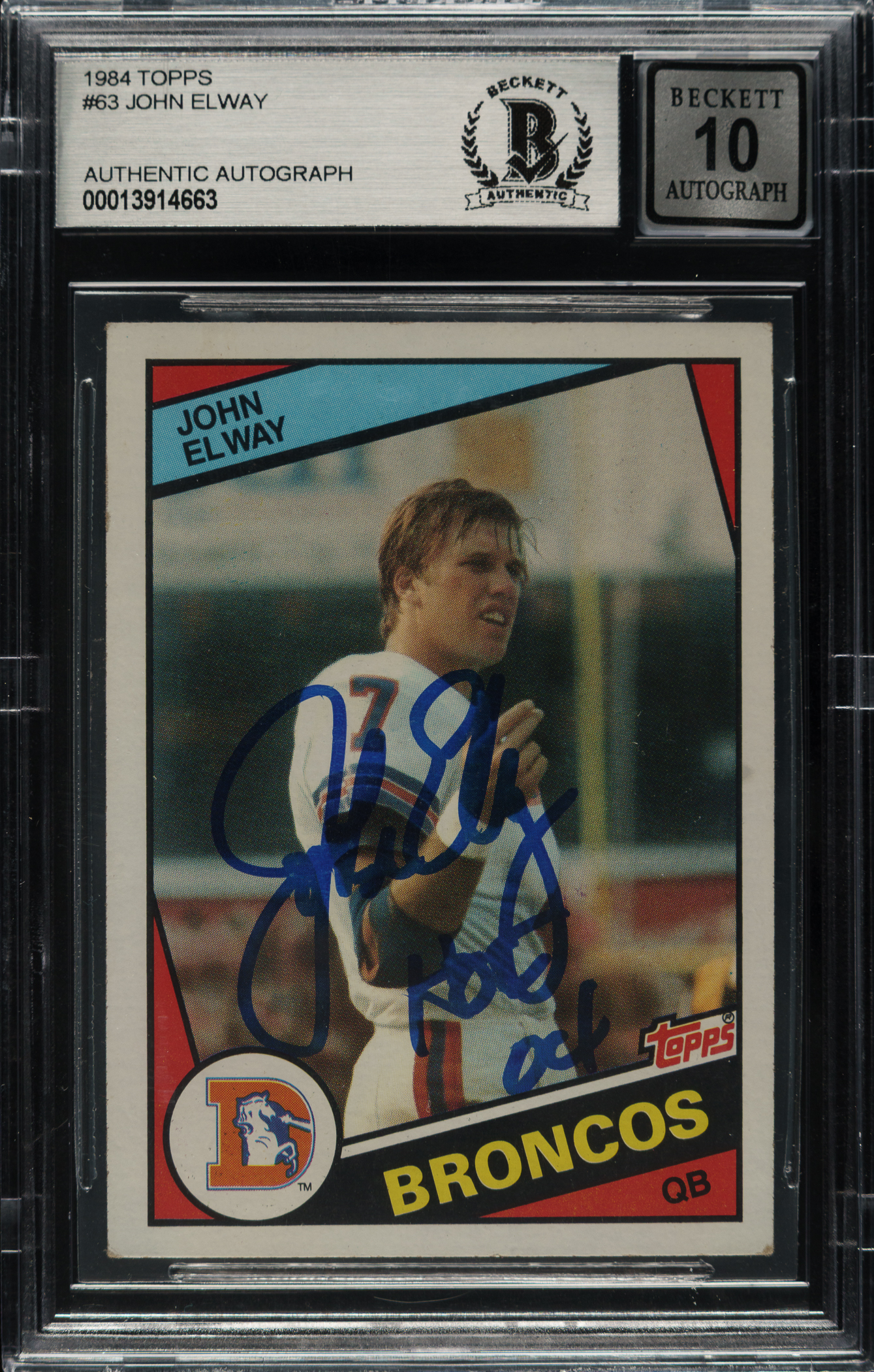 Beckett has encapsulated the card, grading the signature GEM MINT 10. Denver Broncos Hall of Famer John Elway.