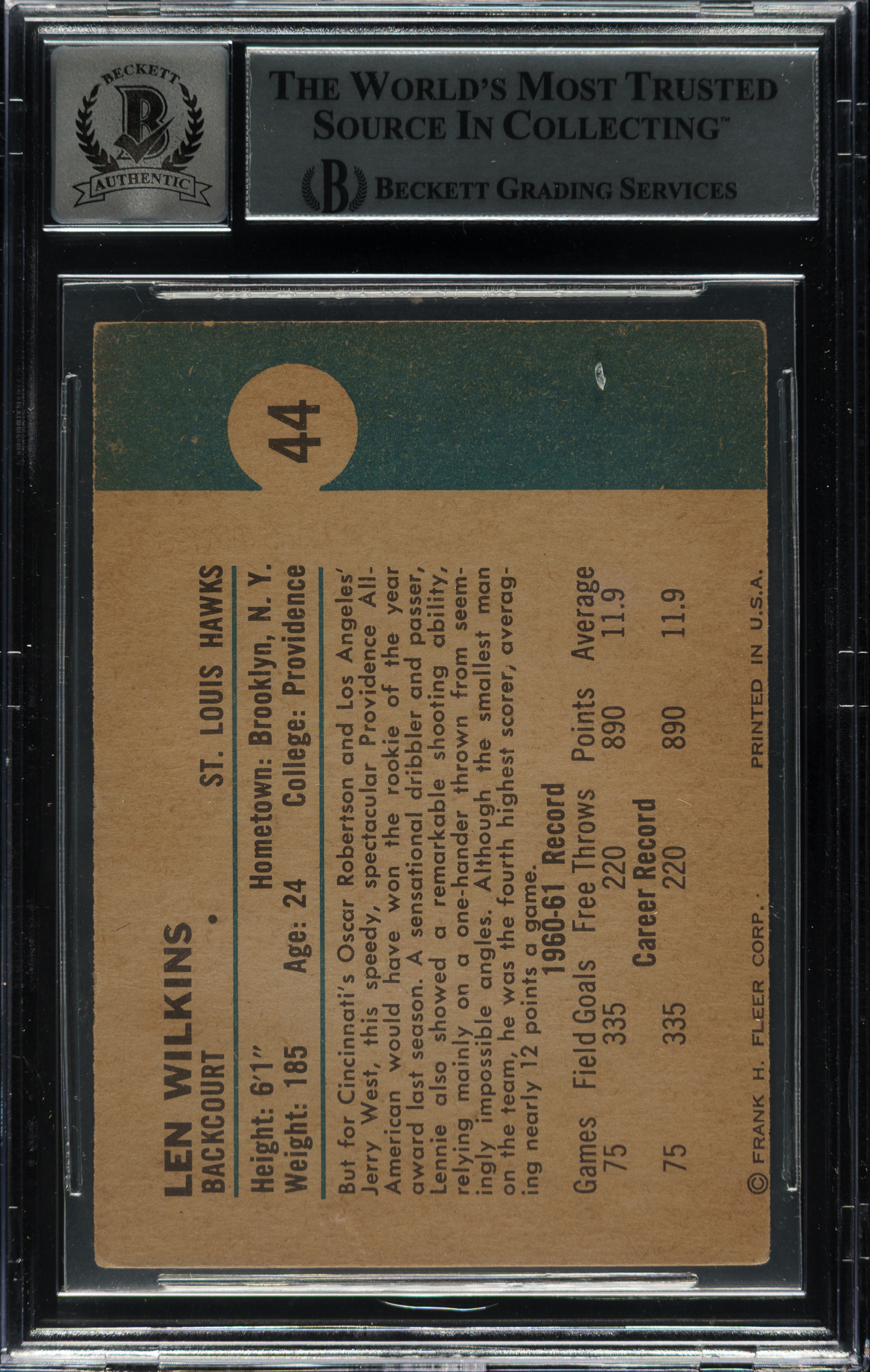Beckett has encapsulated the card, grading the signature GEM MINT 10. St. Louis Hawks Hall of Famer Lenny Wilkens.