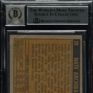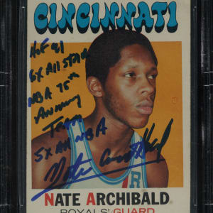 Beckett has encapsulated the card, grading the signature GEM MINT 10. Cincinnati Royals Hall of Famer Nate Archibald.