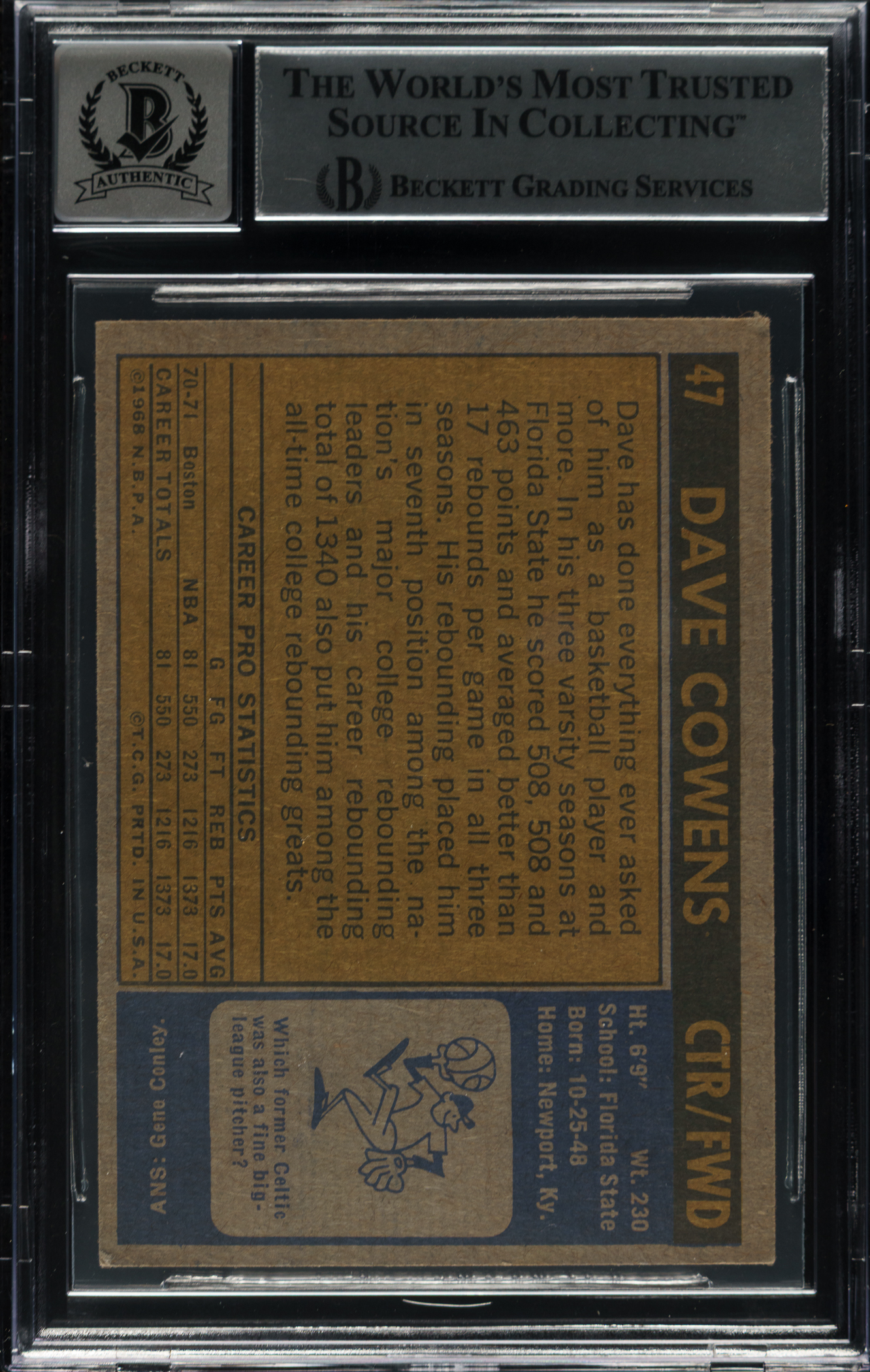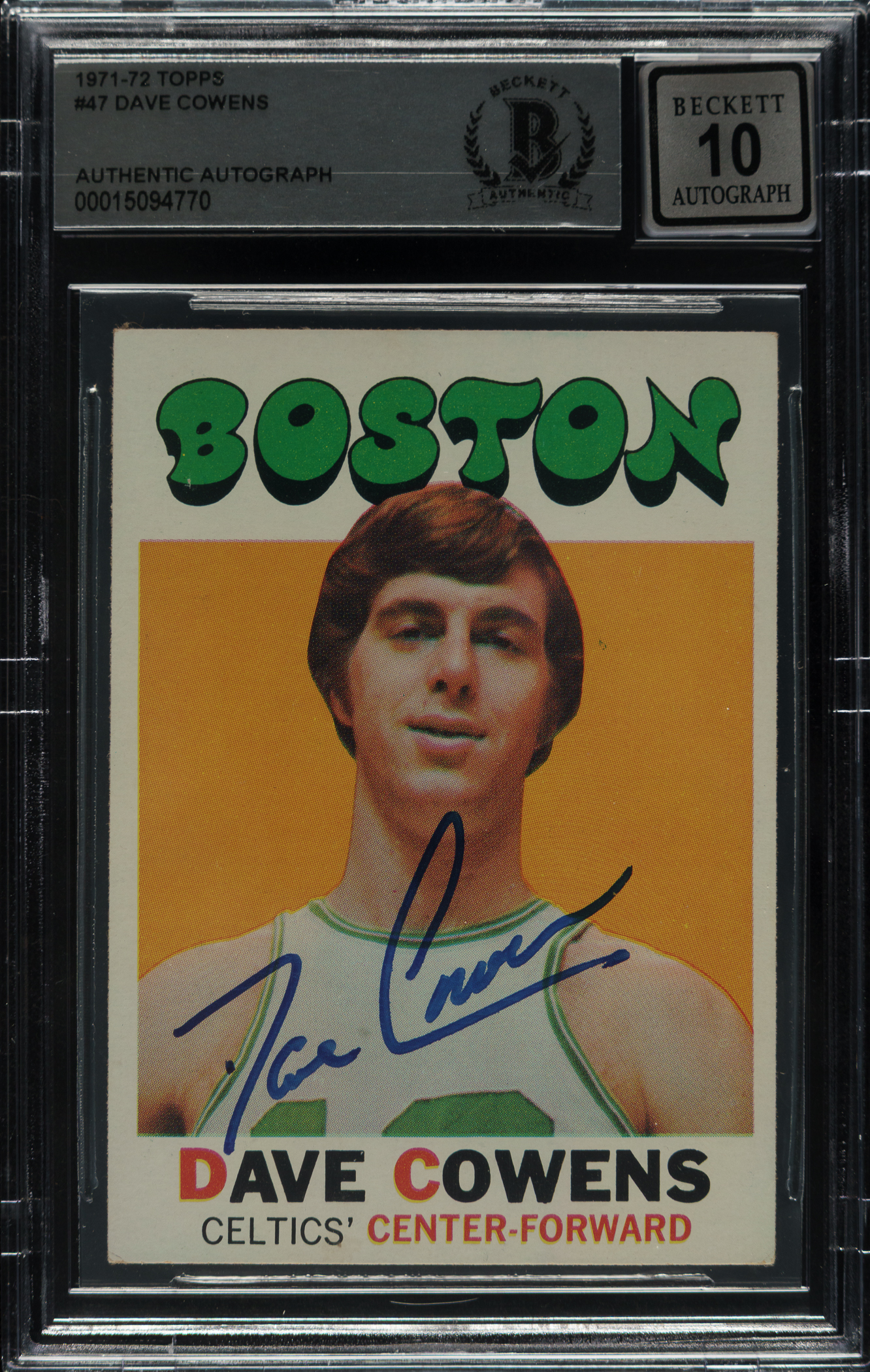 Beckett has encapsulated the card, grading the signature GEM MINT 10. Boston Celtics Hall of Famer Dave Cowens.