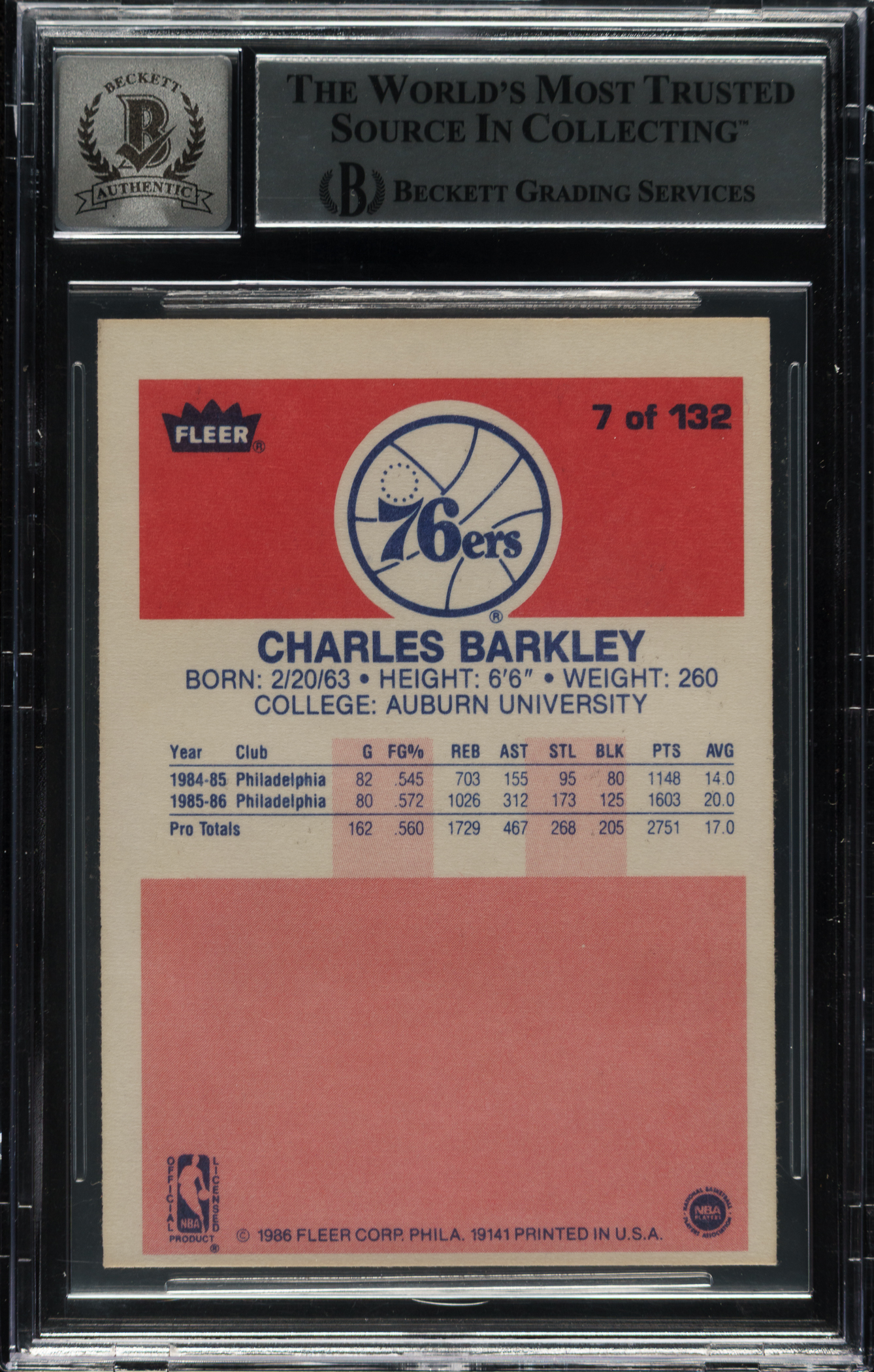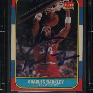 Beckett has encapsulated the card, grading the signature GEM MINT 10. Philadelphia 76ers Hall of Famer Charles Barkley.