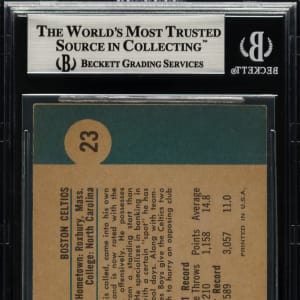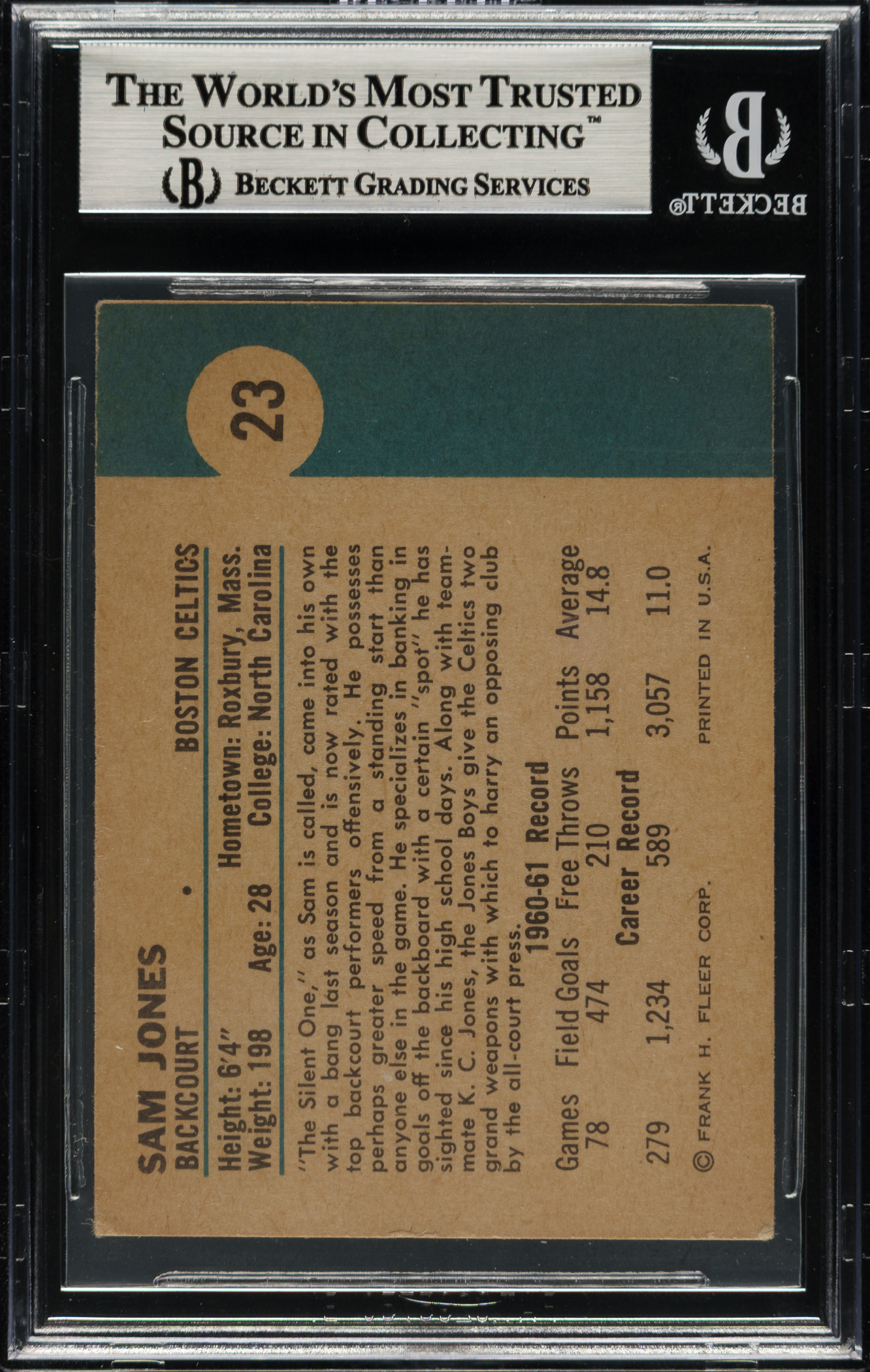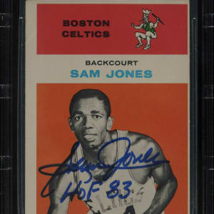 Beckett has encapsulated the card, grading the signature Authentic. Boston Celtics Hall of Famer Sam Jones.