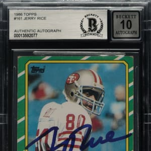 Beckett has encapsulated the card, grading the signature GEM MINT 10. San Francisco 49ers Hall of Famer Jerry Rice.