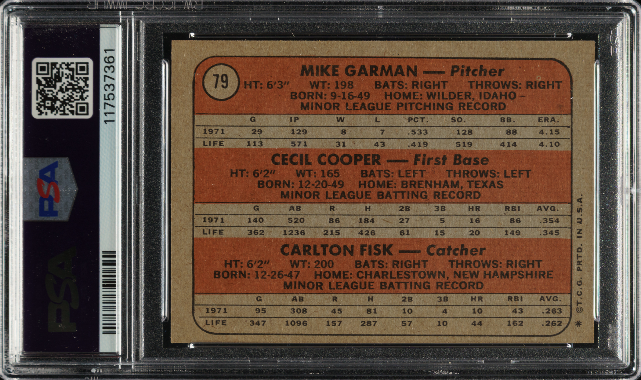 Graded NM 7 by PSA. Boston Red Sox Hall of Famer Carlton Fisk.