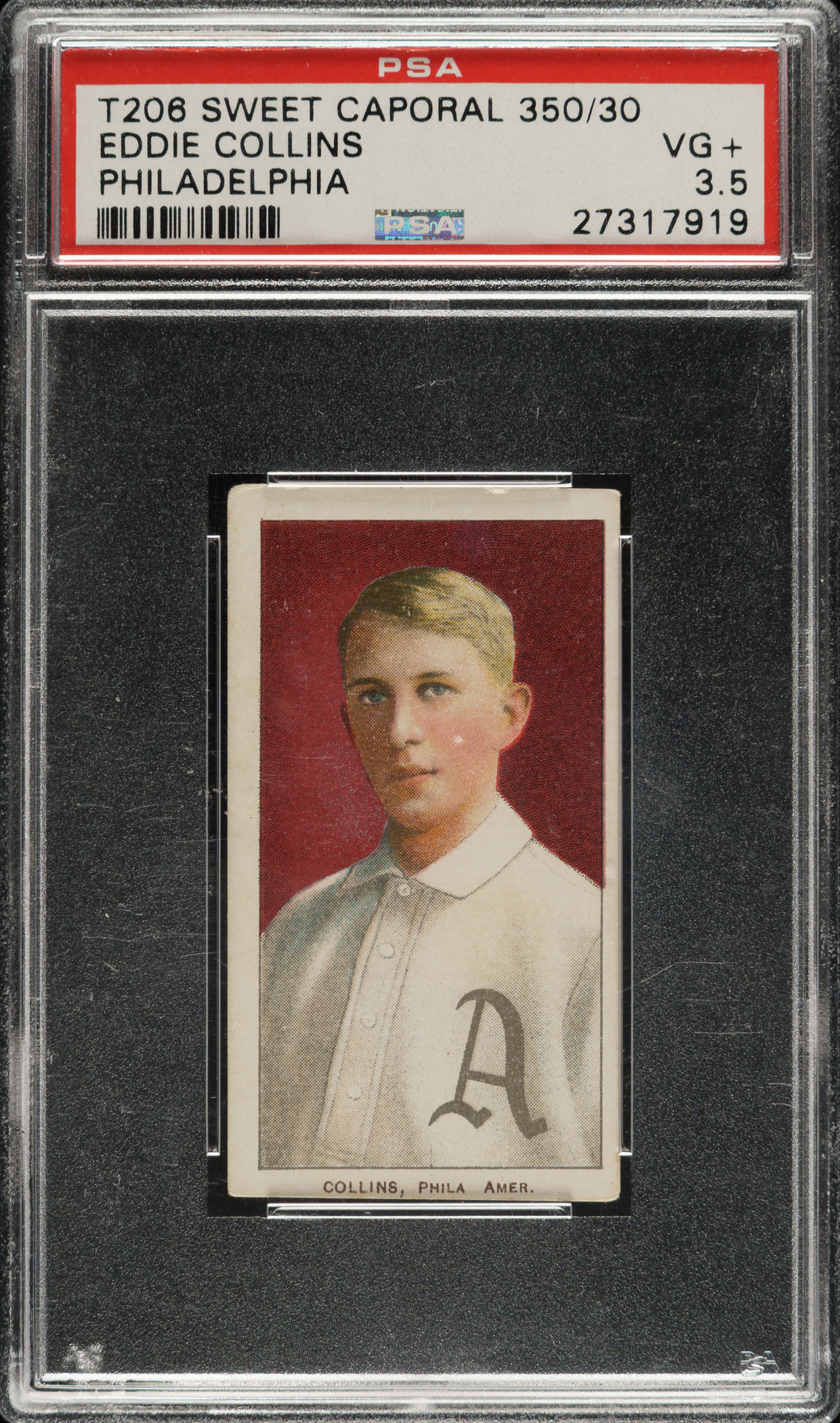Graded VG+ 3.5 by PSA. Philadelphia Athletics Hall of Famer Eddie Collins.