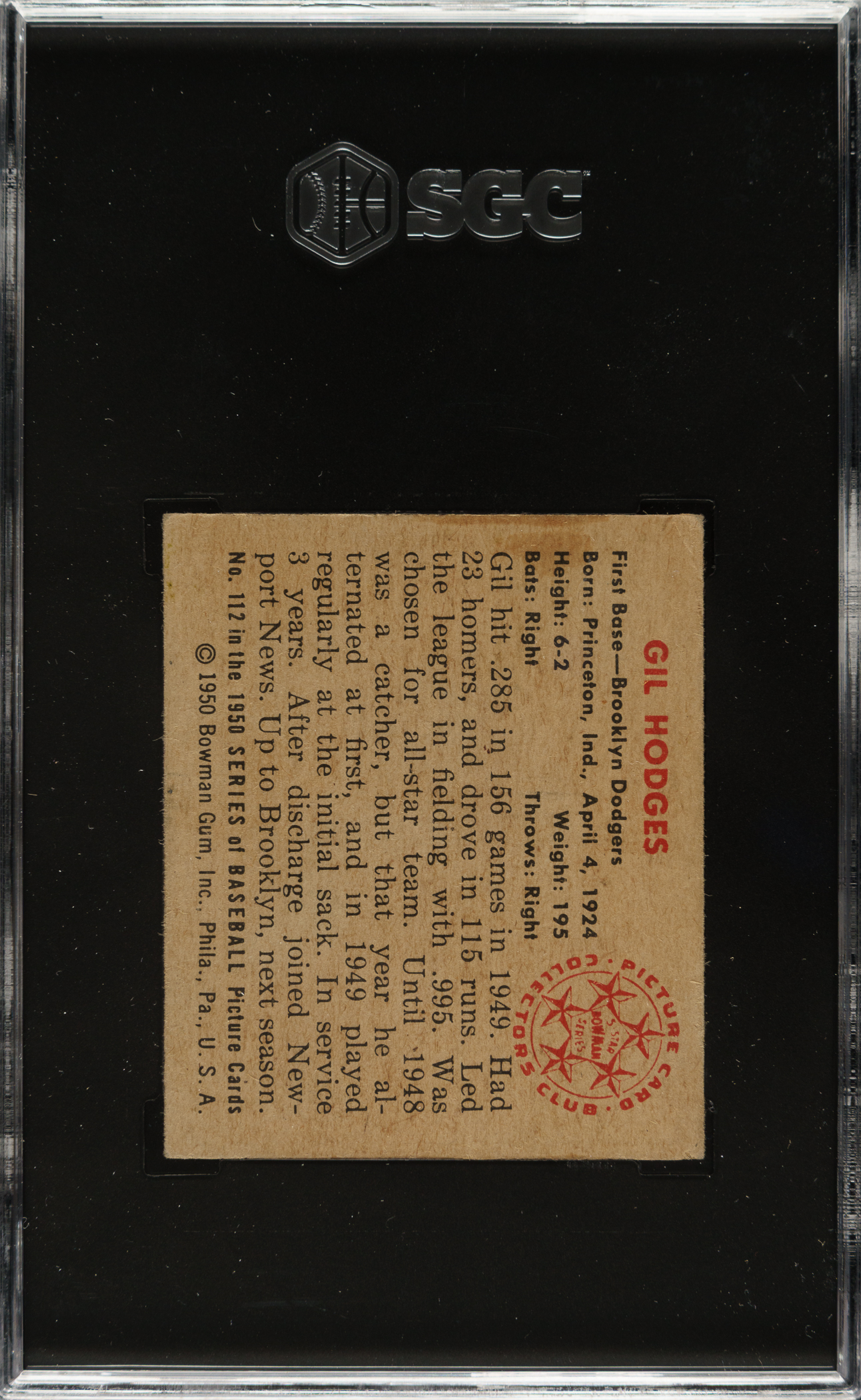 Graded VG/EX 4 by SGC. Brooklyn Dodgers Hall of Famer Gil Hodges.