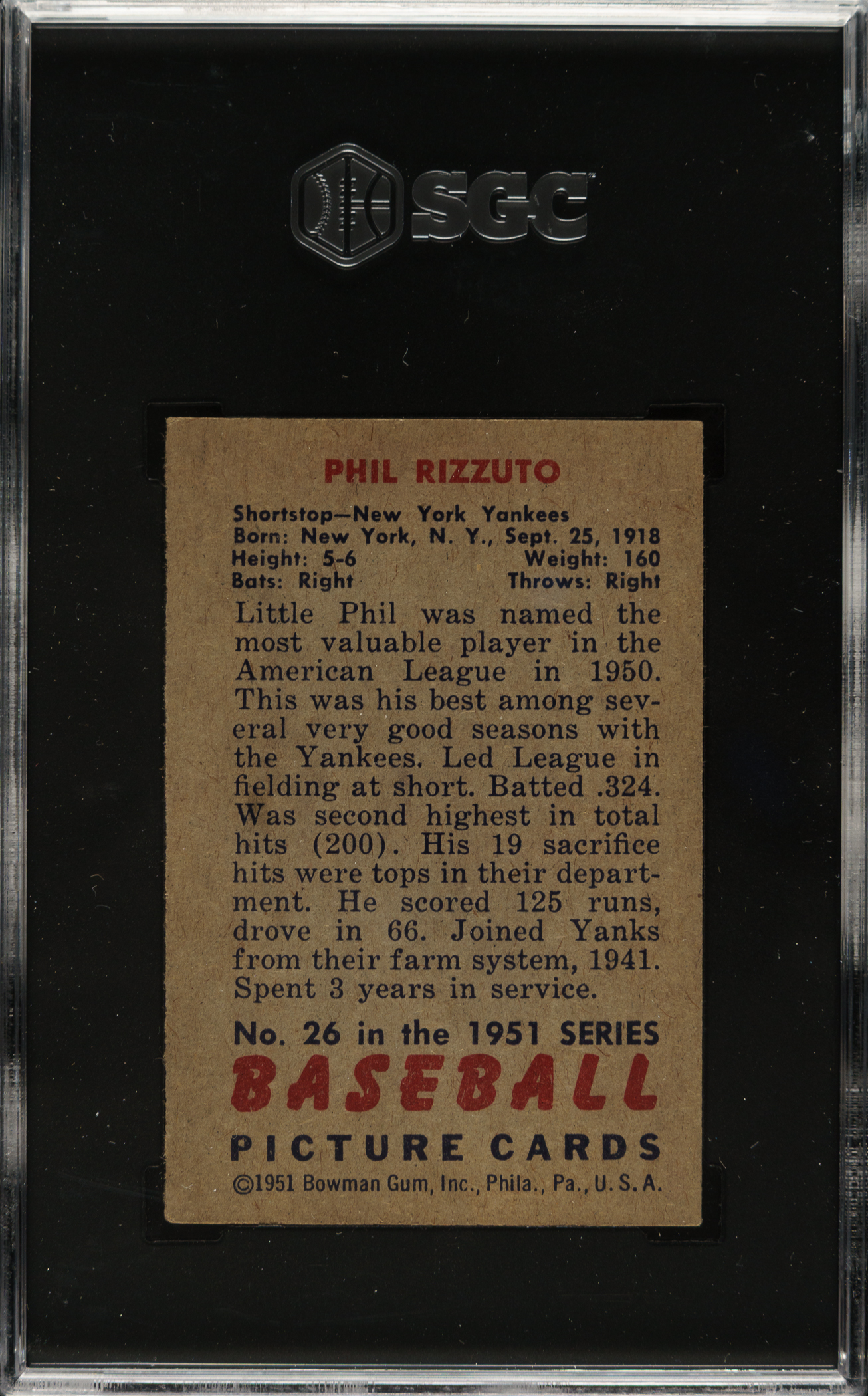 Graded VG/EX 4 by SGC. New York Yankees Hall of Famer Phil Rizzuto.