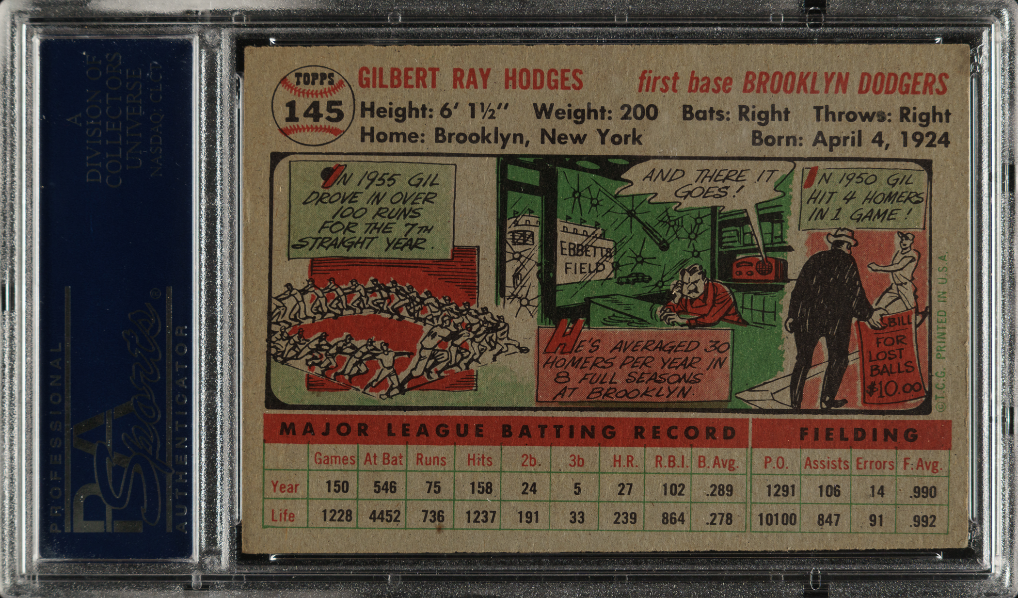 Graded EX-MT 6 by PSA. Brooklyn Dodgers Hall of Famer Gil Hodges.