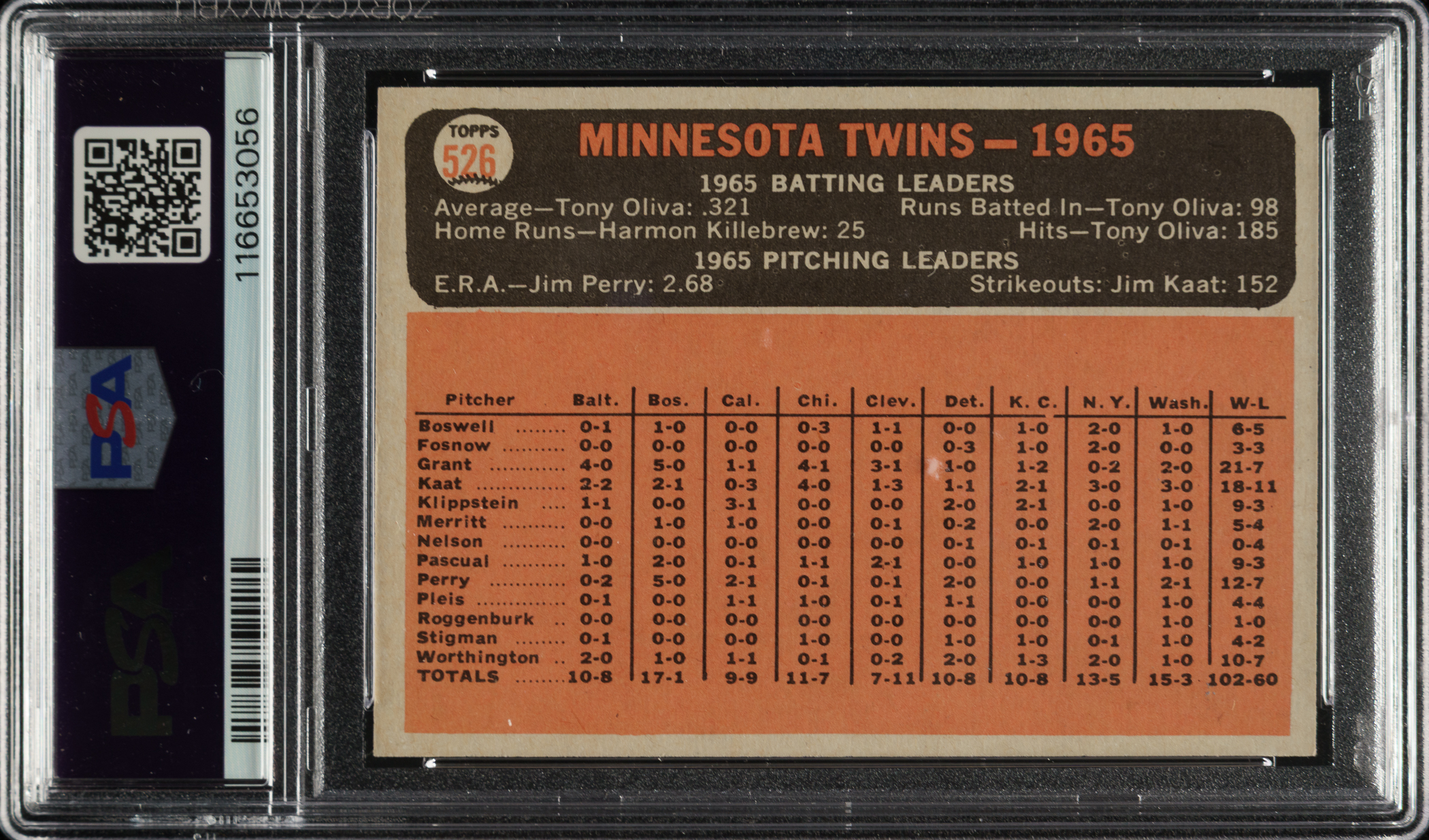 Graded NM-MT 8 by PSA. Minnesota Twins.