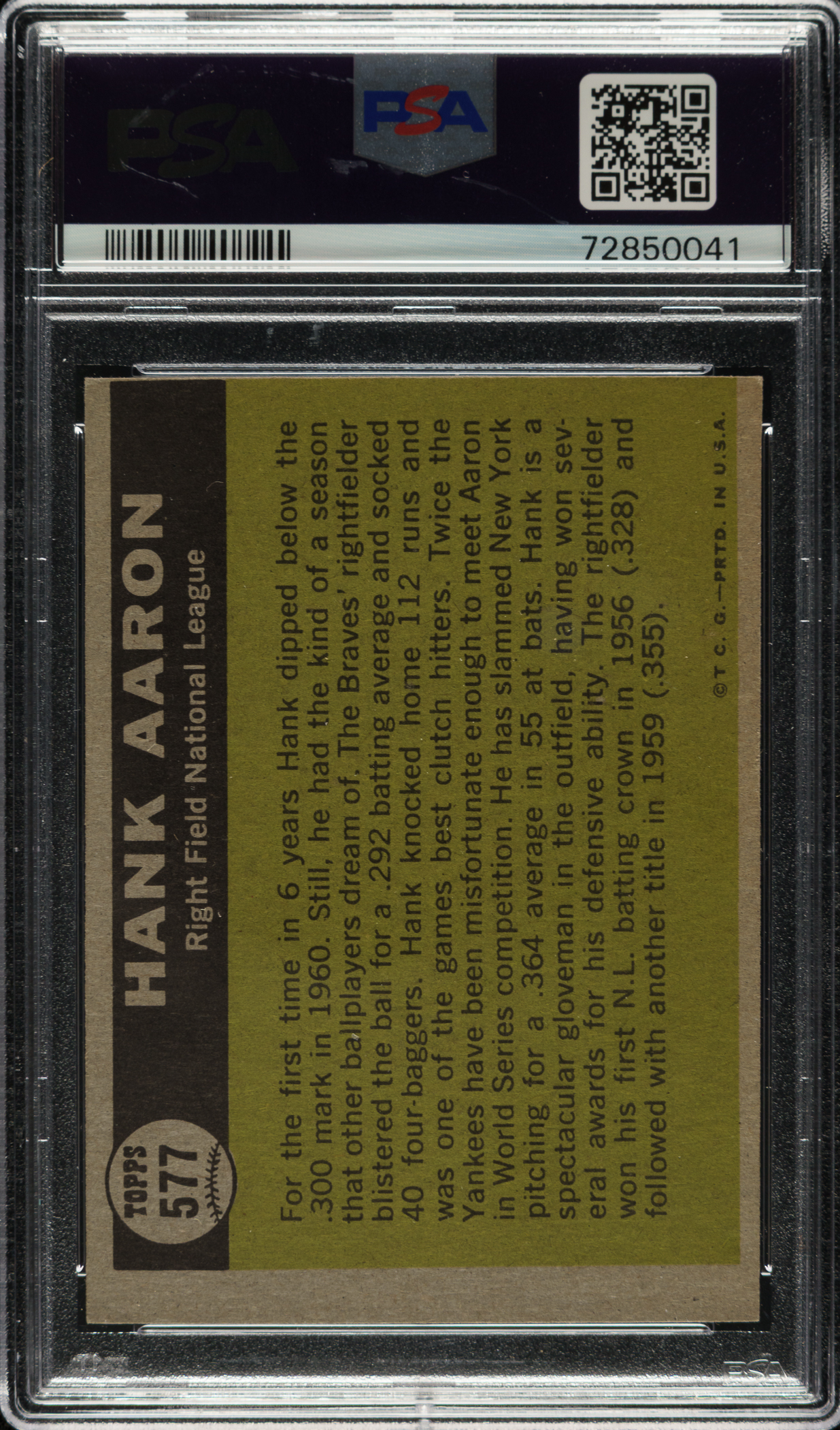 Lot # 2918: 1961 Topps #577 Hank Aaron All-Star PSA EX 5