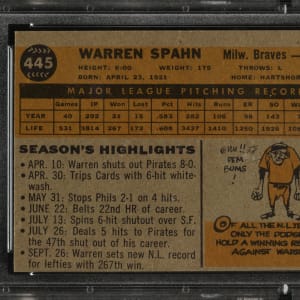 Graded EX-MT 6 by PSA. Milwaukee Braves Hall of Famer Warren Spahn.