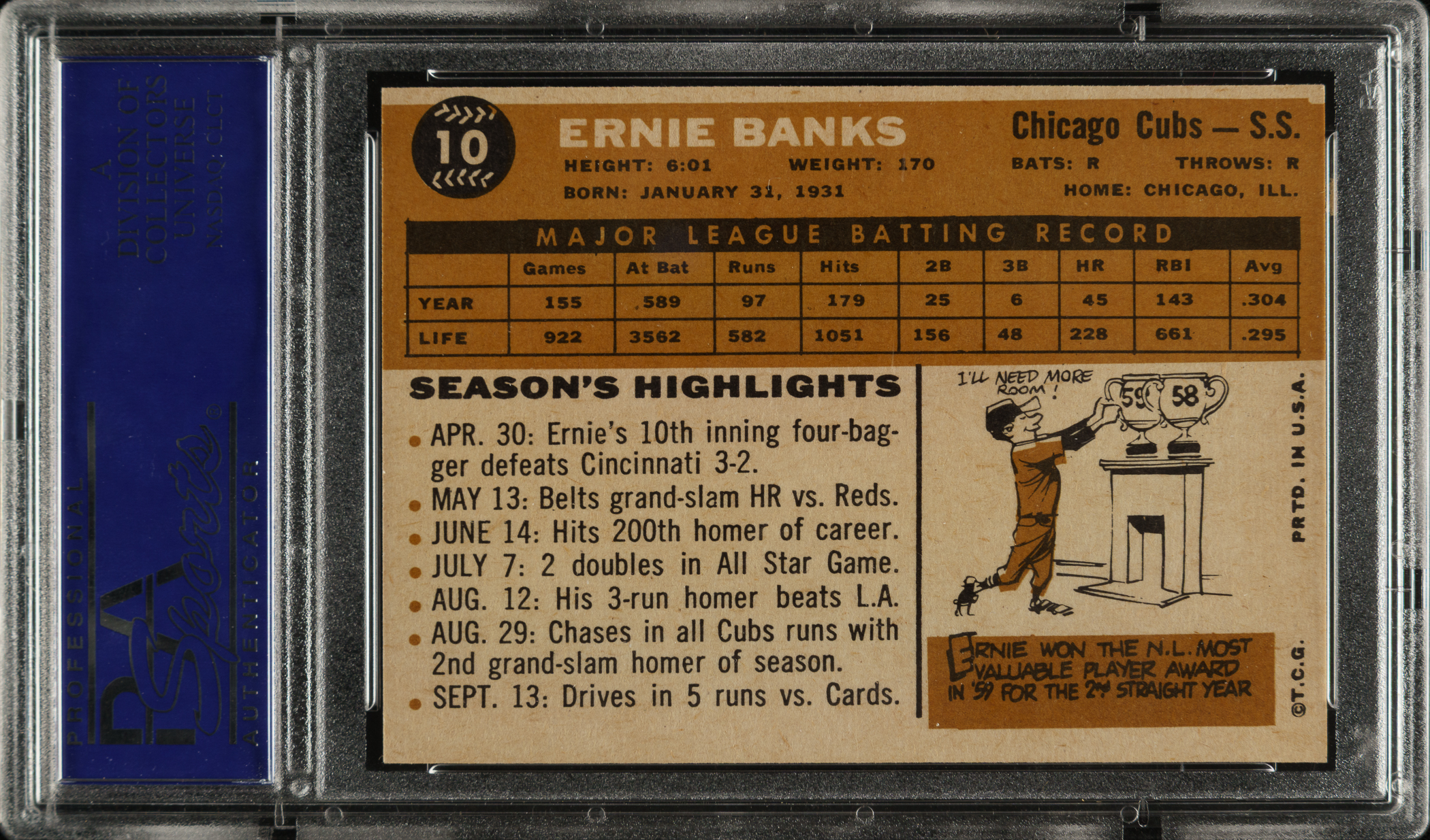 Graded EX-MT 6 by PSA. Chicago Cubs Hall of Famer Ernie Banks.