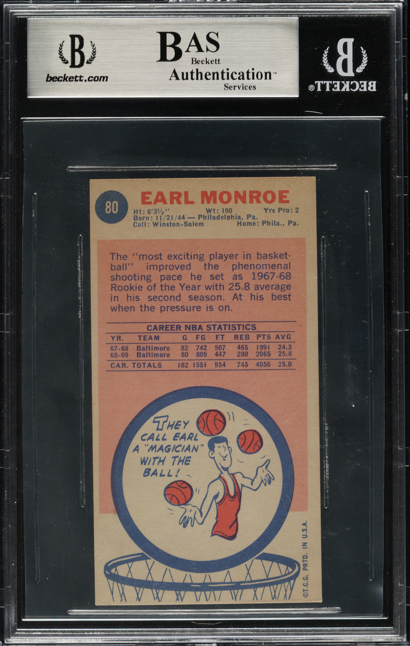 Beckett has encapsulated the card, grading the signature GEM MINT 10. Baltimore Bullets Hall of Famer Earl Monroe.