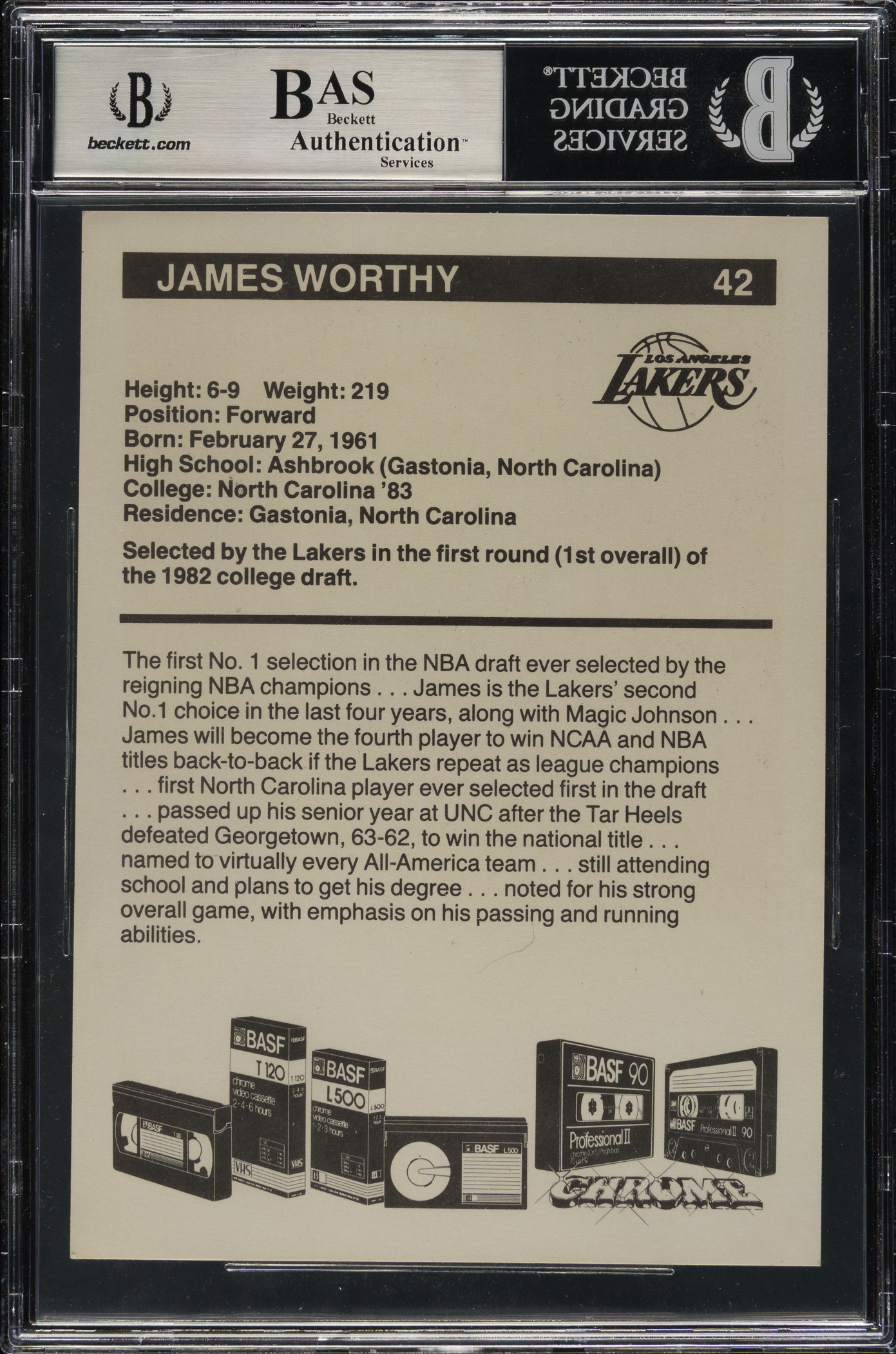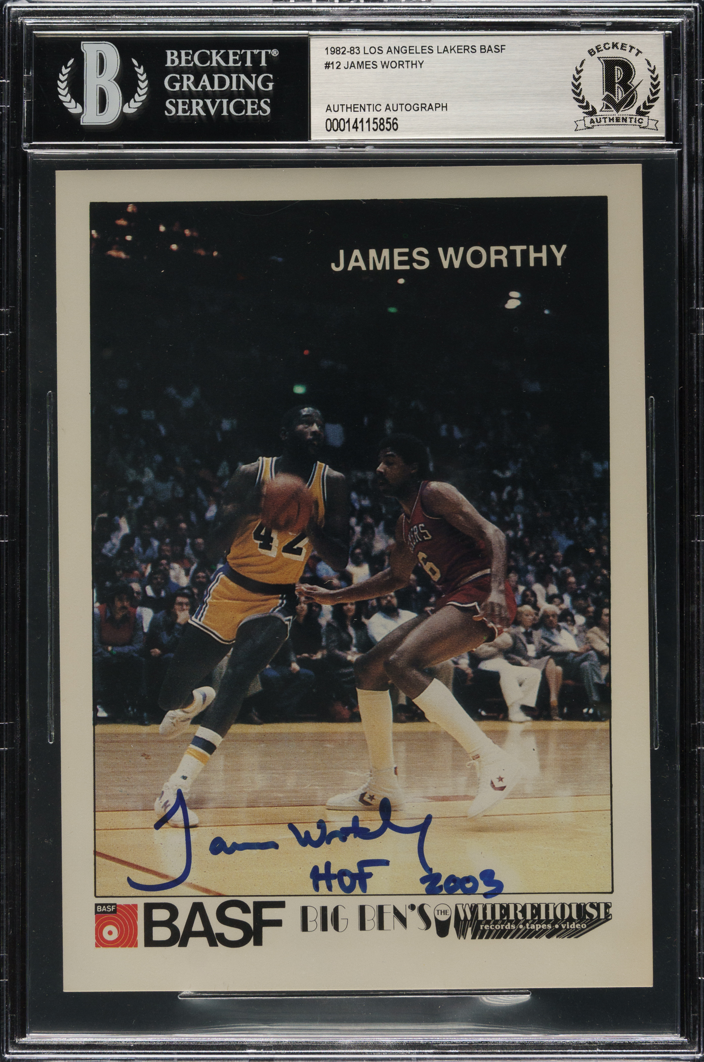 Beckett has encapsulated the card, grading the signature Authentic. Los Angeles Lakers Hall of Famer James Worthy.