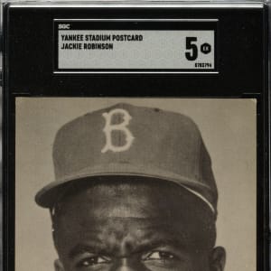 Lot # 2364: 1950s Yankee Stadium Postcard Jackie Robinson SGC EX 5