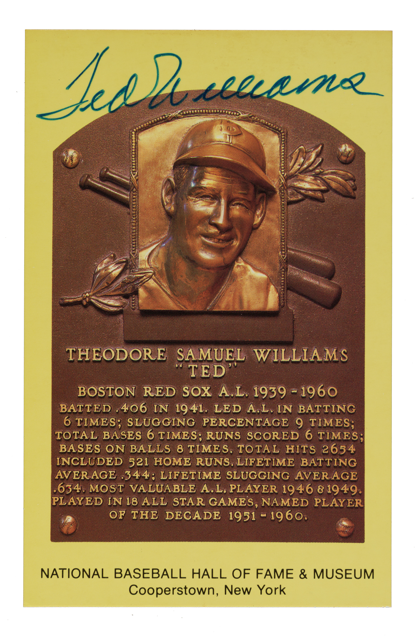 Boston Red Sox Hall of Famer Ted Williams signed Yellow Hall of Fame postcard. Full LOA from James Spence/JSA.