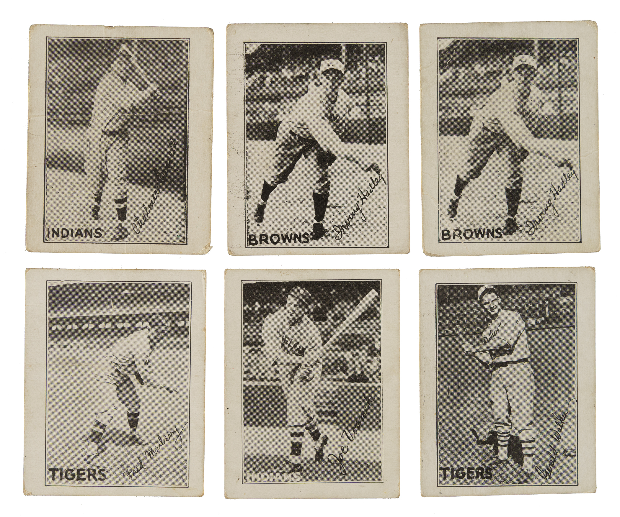 Collection of six 1932 W574 baseball cards. This collection consists of the following: Cissell (Pr), two Hadley (Gd+ and Fr-Gd), Marberry (Gd), Vosmik (Vg), and Walker (Vg). Total: 6 cards.