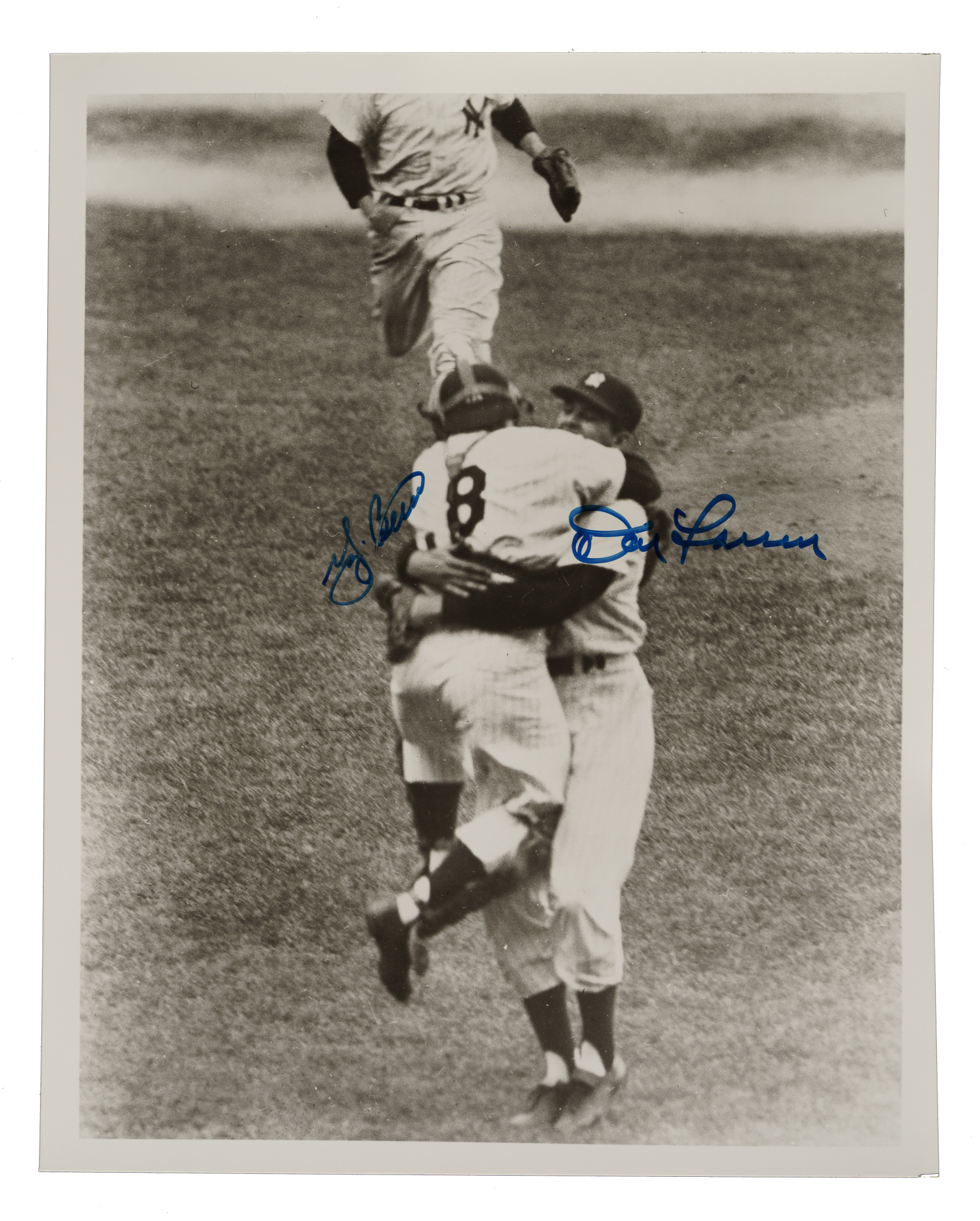 New York Yankees Hall of Famer and star Yogi Berra and Don Larsen signed photograph. Total Dimensions: 12-3/8 x 15-3/8 inches. Auction LOA from James Spence/JSA.