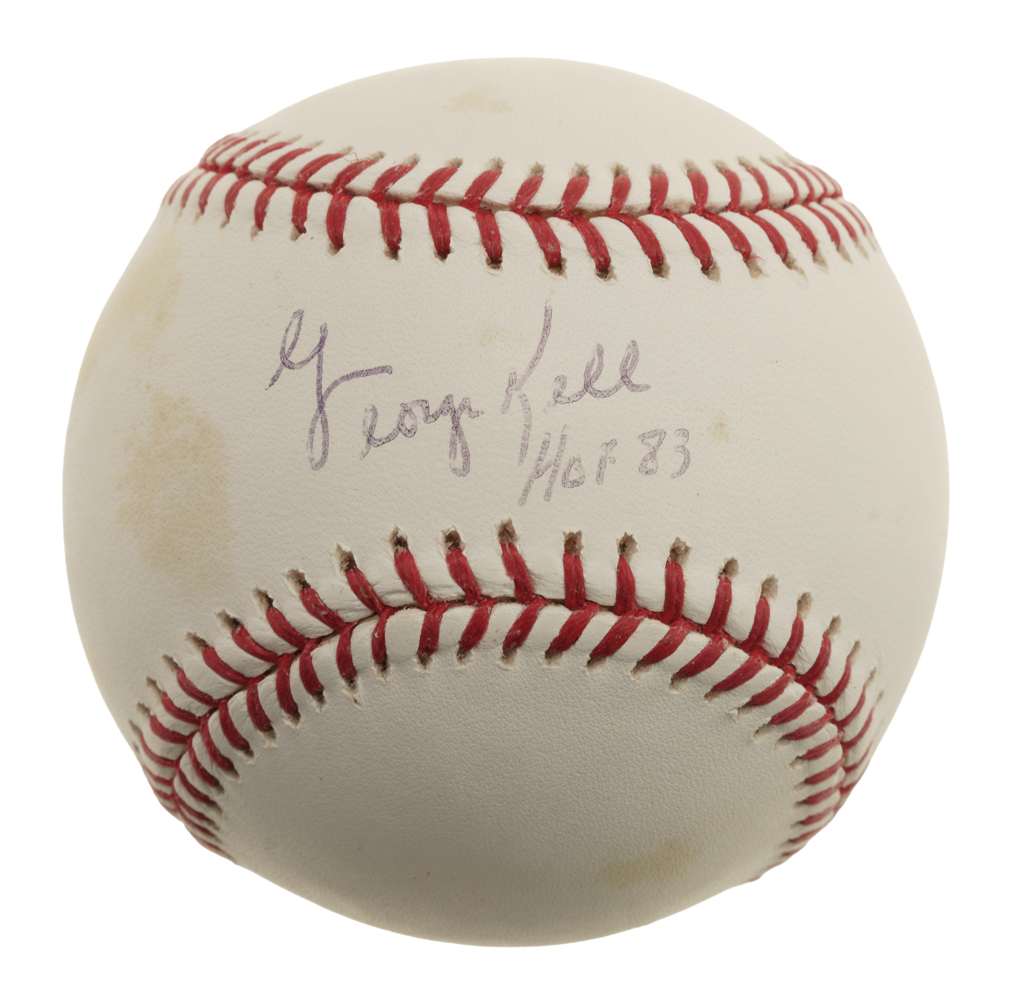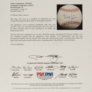 Detroit Tigers Hall of Famer George Kell signed baseball. PSA/DNA has graded the ball GEM MINT 10 and the signature GEM MINT 10 for an overall grade of GEM MINT 10. Full LOA from PSA/DNA.