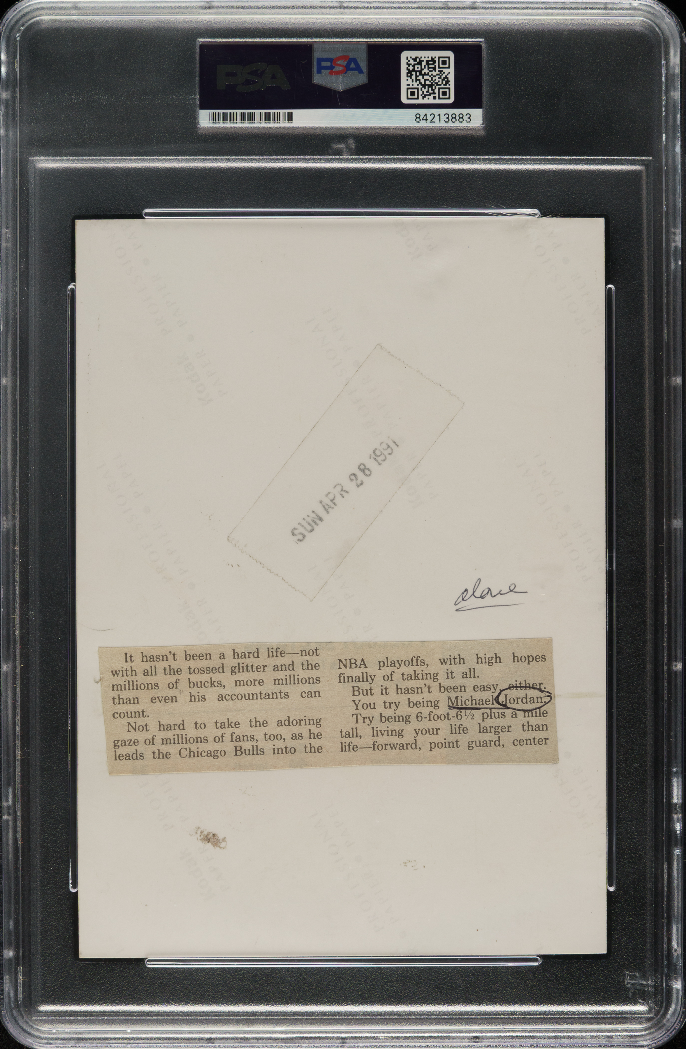 Chicago Bulls basketball Hall of Famer Michael Jordan. Encapsulated and certified as an original Type I photograph by PSA/DNA.