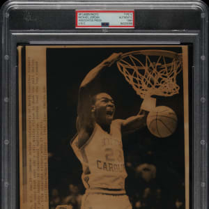 Chicago Bulls basketball Hall of Famer Michael Jordan. Encapsulated and certified as a Type III photograph by PSA/DNA.