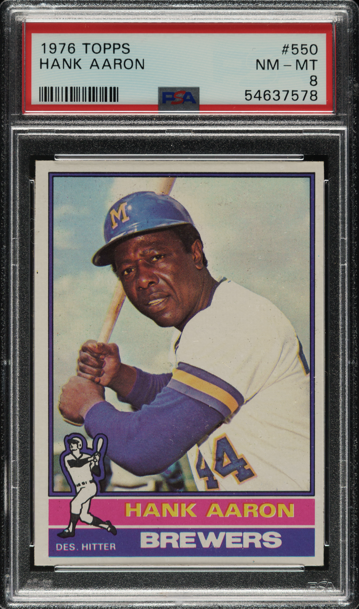 Graded NM-MT 8 by PSA. Milwaukee Brewers Hall of Famer Hank Aaron.