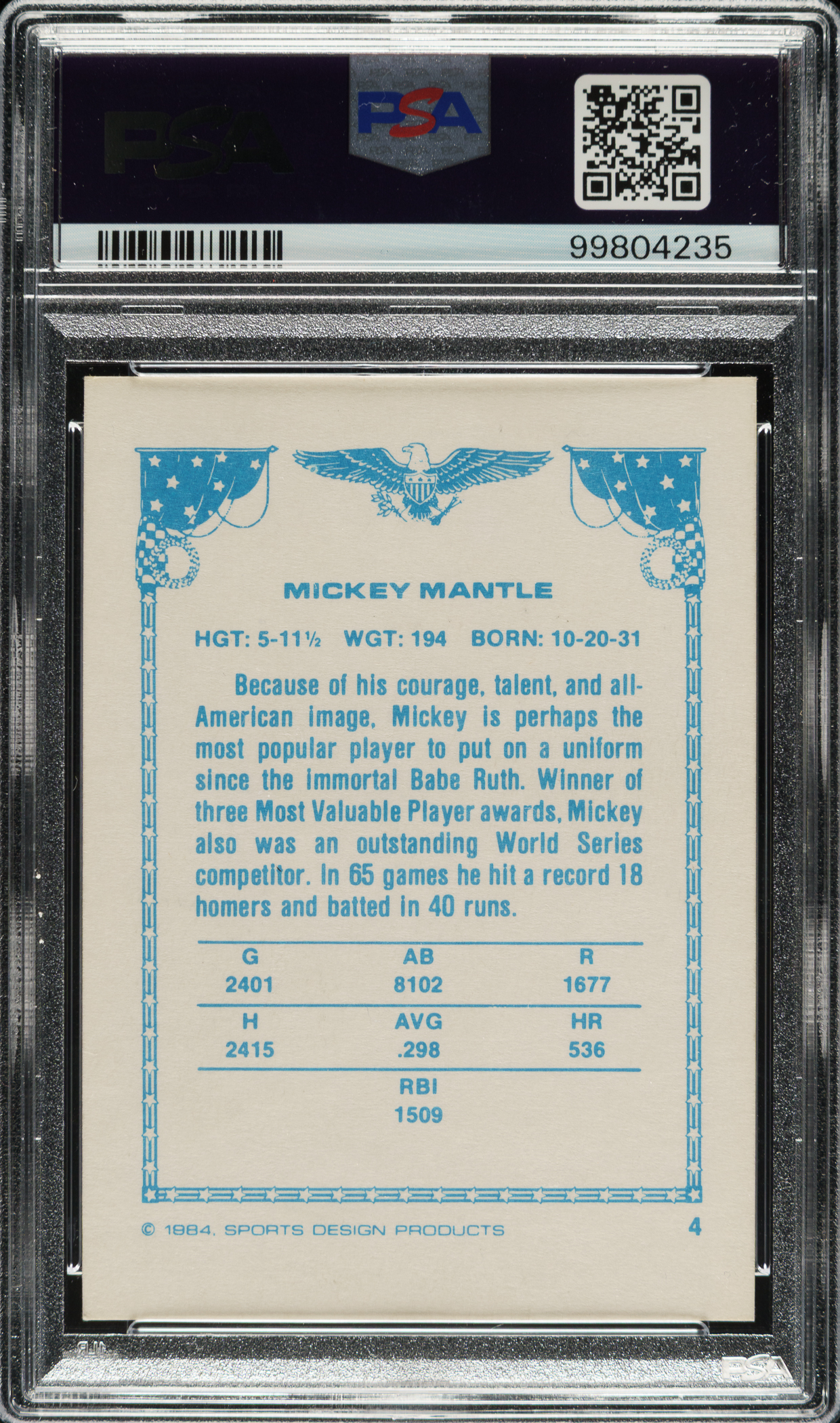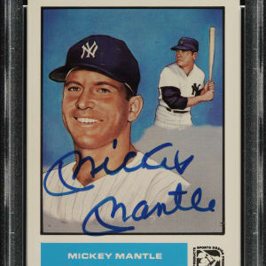 PSA/DNA has encapsulated the card, grading the signature GEM MINT 10 and the card EX 5. New York Yankees Hall of Famer Mickey Mantle.