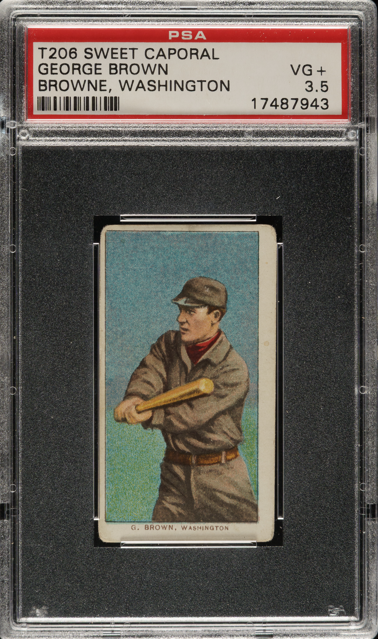Lot # 327: 1909-1911 T206 White Border George Brown Washington PSA VG+ 3.5
