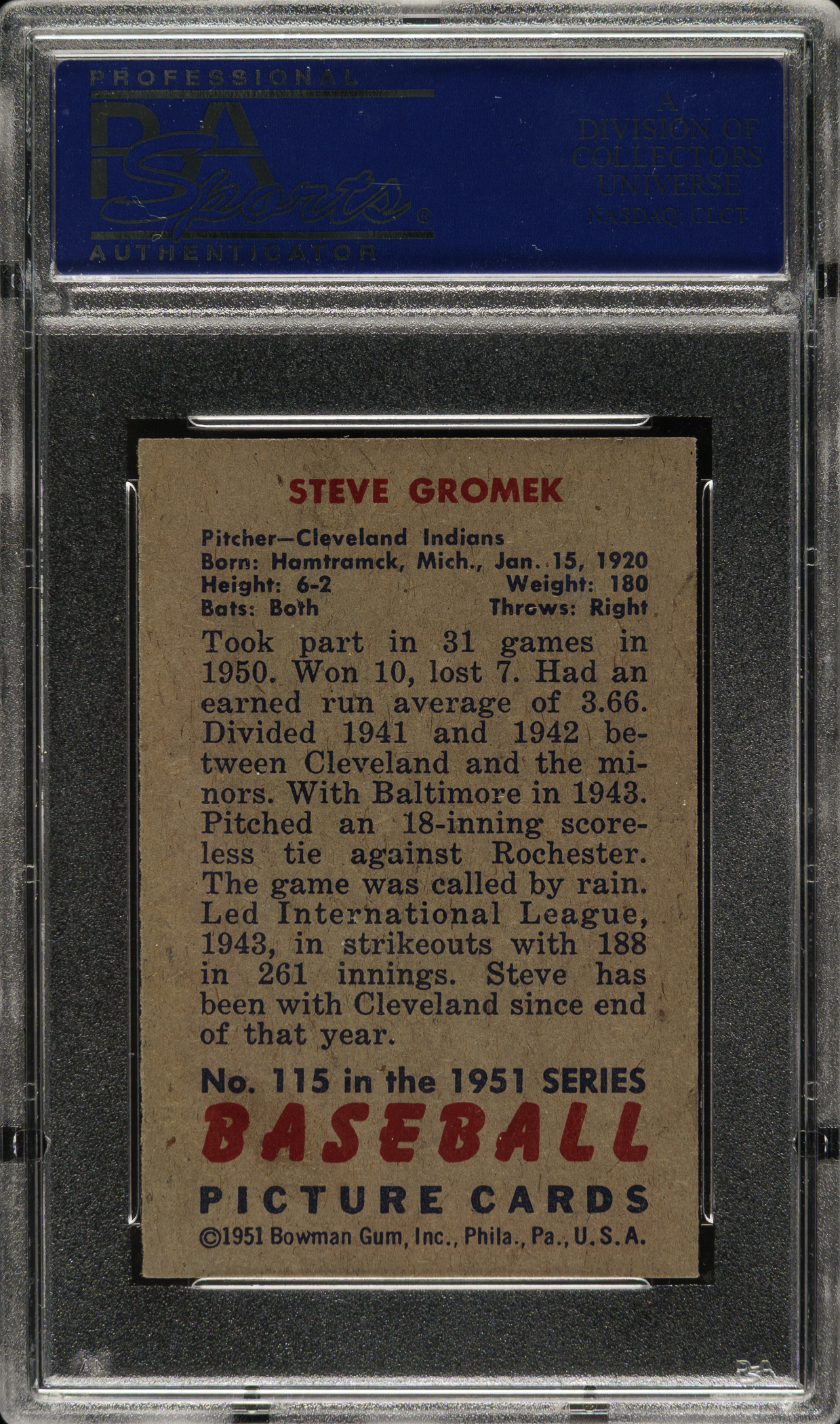 Graded NM-MT 8 by PSA. Cleveland Indians.