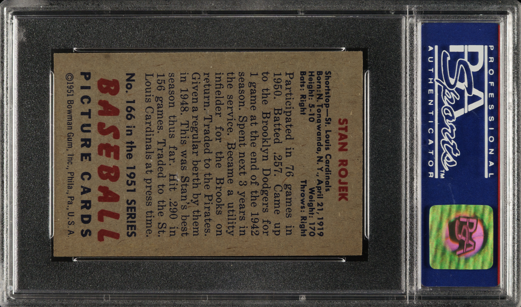 Lot # 2408: 1951 Bowman #166 Stan Rojek PSA NM-MT 8