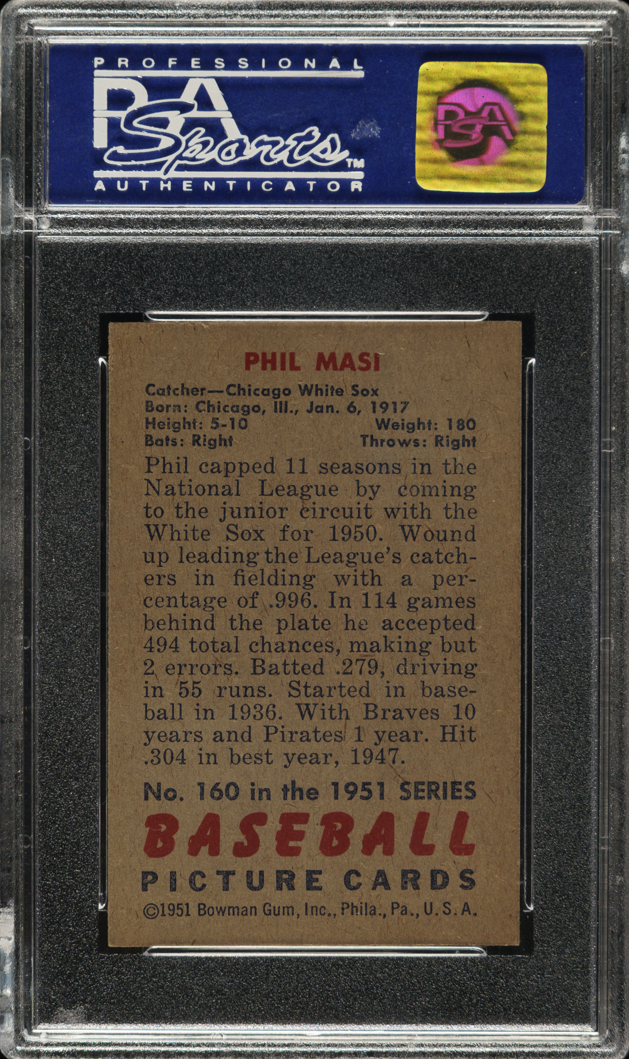 Lot # 2403: 1951 Bowman #160 Phil Masi PSA NM-MT 8