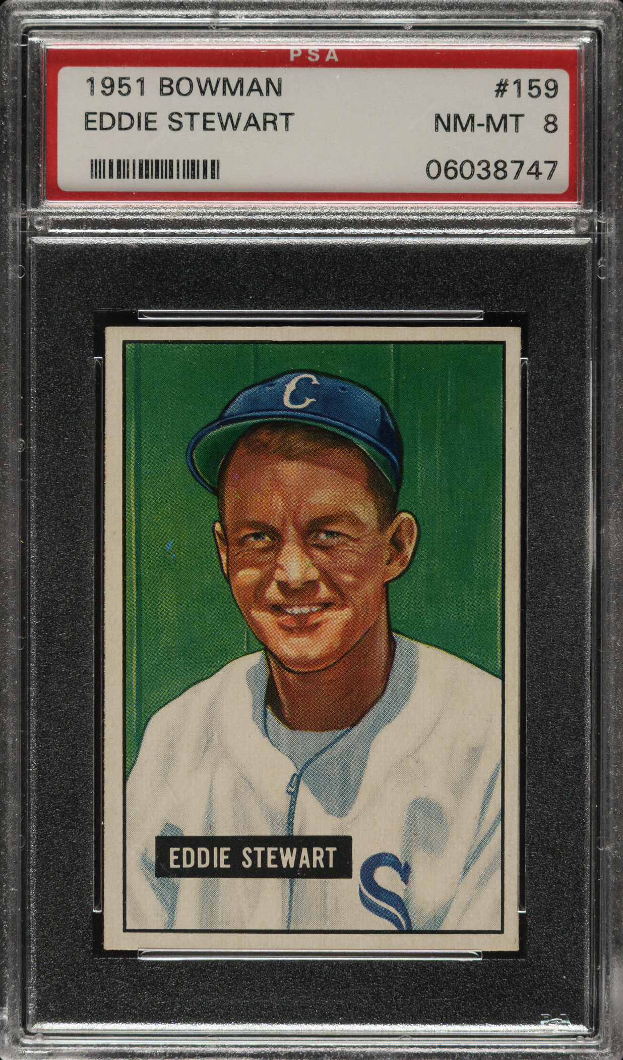 Lot # 2401: 1951 Bowman #159 Eddie Stewart PSA NM-MT 8