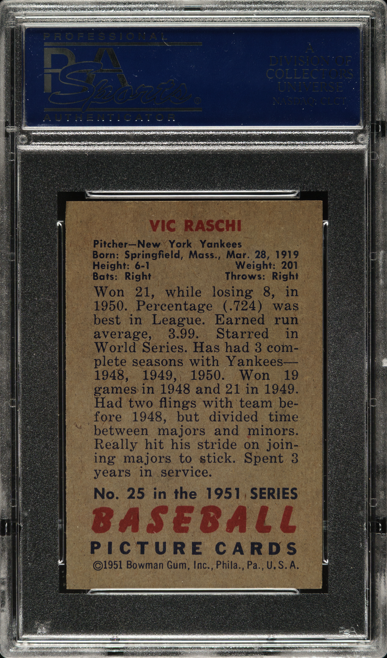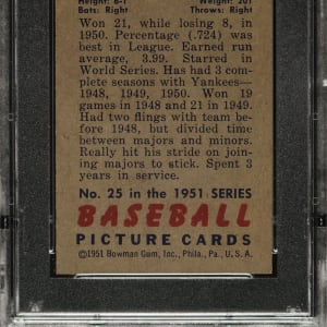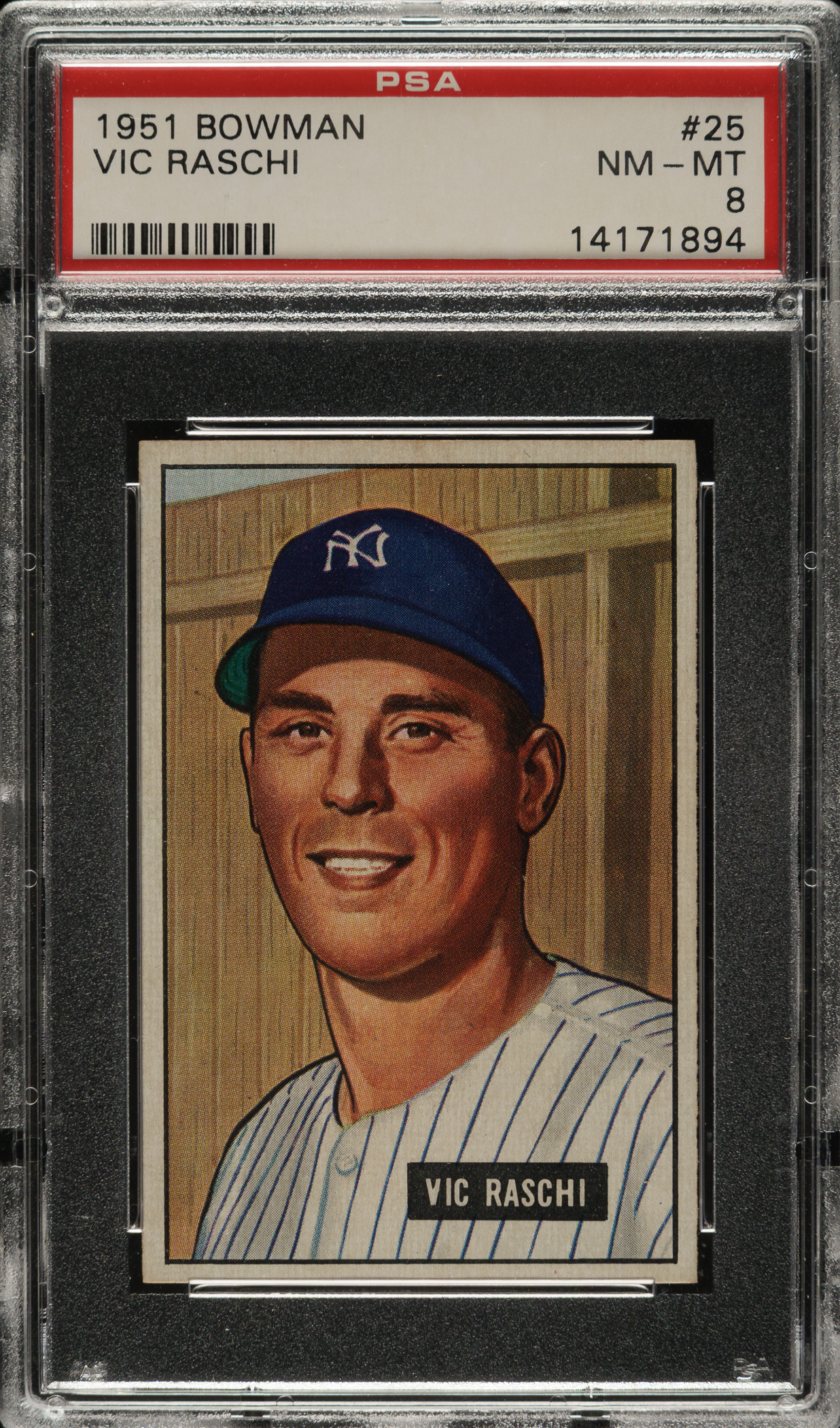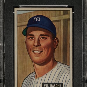 Lot # 2456: 1951 Bowman #25 Vic Raschi PSA NM-MT 8