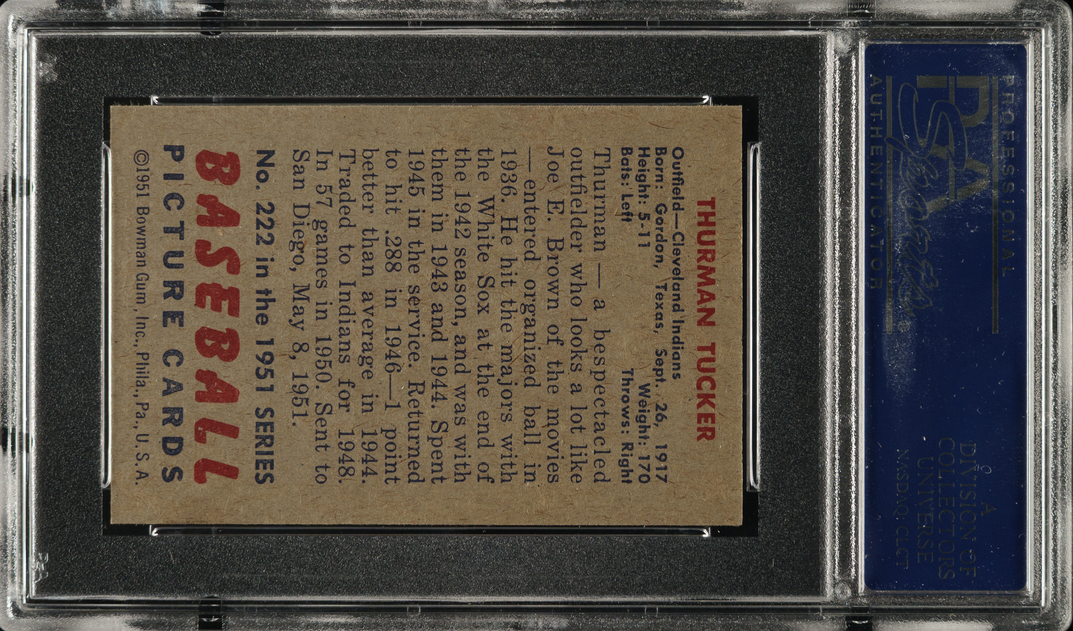 Lot # 2438: 1951 Bowman #222 Thurman Tucker PSA NM-MT 8