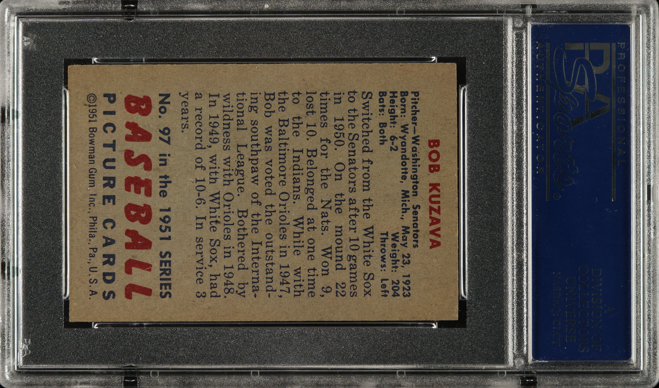 Lot # 2500: 1951 Bowman #97 Bob Kuzava PSA NM-MT 8
